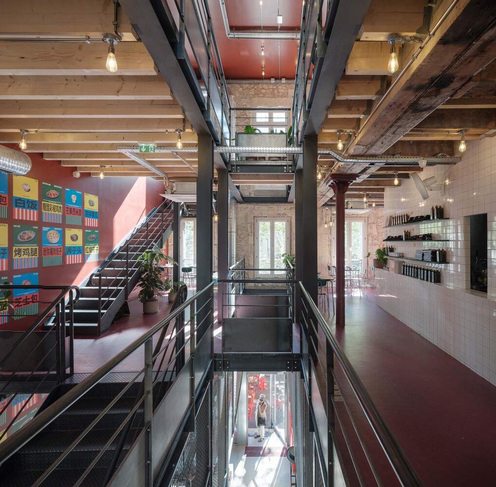 Ruen was invited to design a concept restaurant for the Bao Family located in the iconic old port of Marseille, France. The restaurant is located in a stone building that blends into the urban fabric of the Cambiyer district, combining aesthetics and historical significance. Gros Bao, a small Chinese restaurant, occupies the first three floors of the building, located between Cours Saint Louis and Rue des R é colettes. St. Louis Square is a symbolic public square of the Old Port, while Rue de la Cort é is a quiet street that runs perpendicular to Canebiere and leads to the revitalized Rue d'Aubagne.