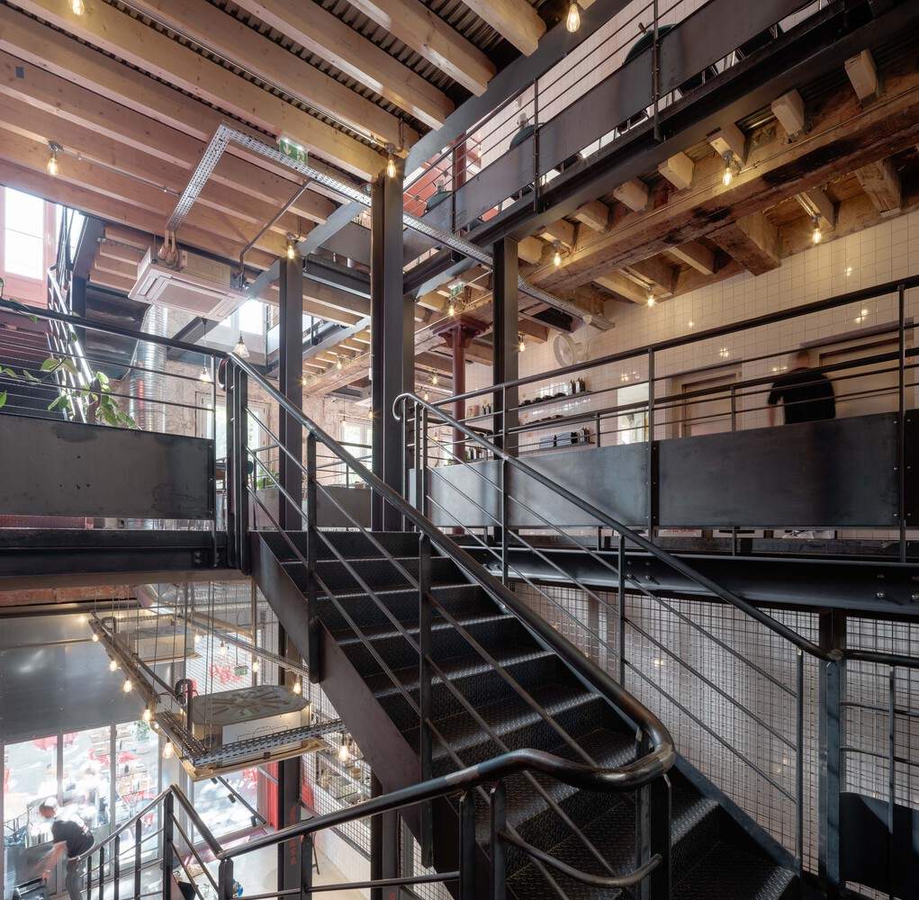 In the early stages of the project, Ruen was drawn to the stark contrast between the openness of St. Louis Square and the quiet atmosphere of Recolete Street. To this end, the design involves creating a new vertical passage in the building that runs through three levels of space, dividing the building into two parts and forming a brand new 'artery'. This design not only reorganizes the spatial flow inside the restaurant, but also symbolically connects these two distinct urban atmospheres - the bustle of public squares and the tranquility of inner streets - organically.