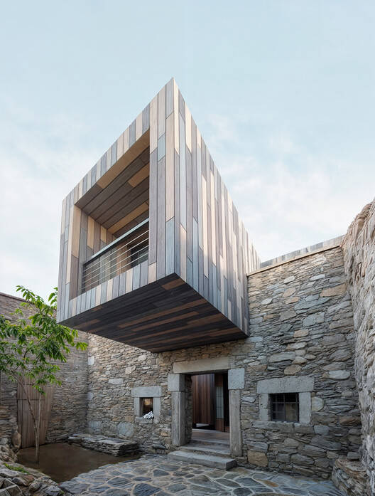 The house is introduced through modules on the roof, leaving an exciting transitional space between the stone masonry building and the current building, such as a courtyard. The overall layout allows us to appreciate the ancient beauty of the original architecture in an almost archaeological way, and its original appearance remains intact.