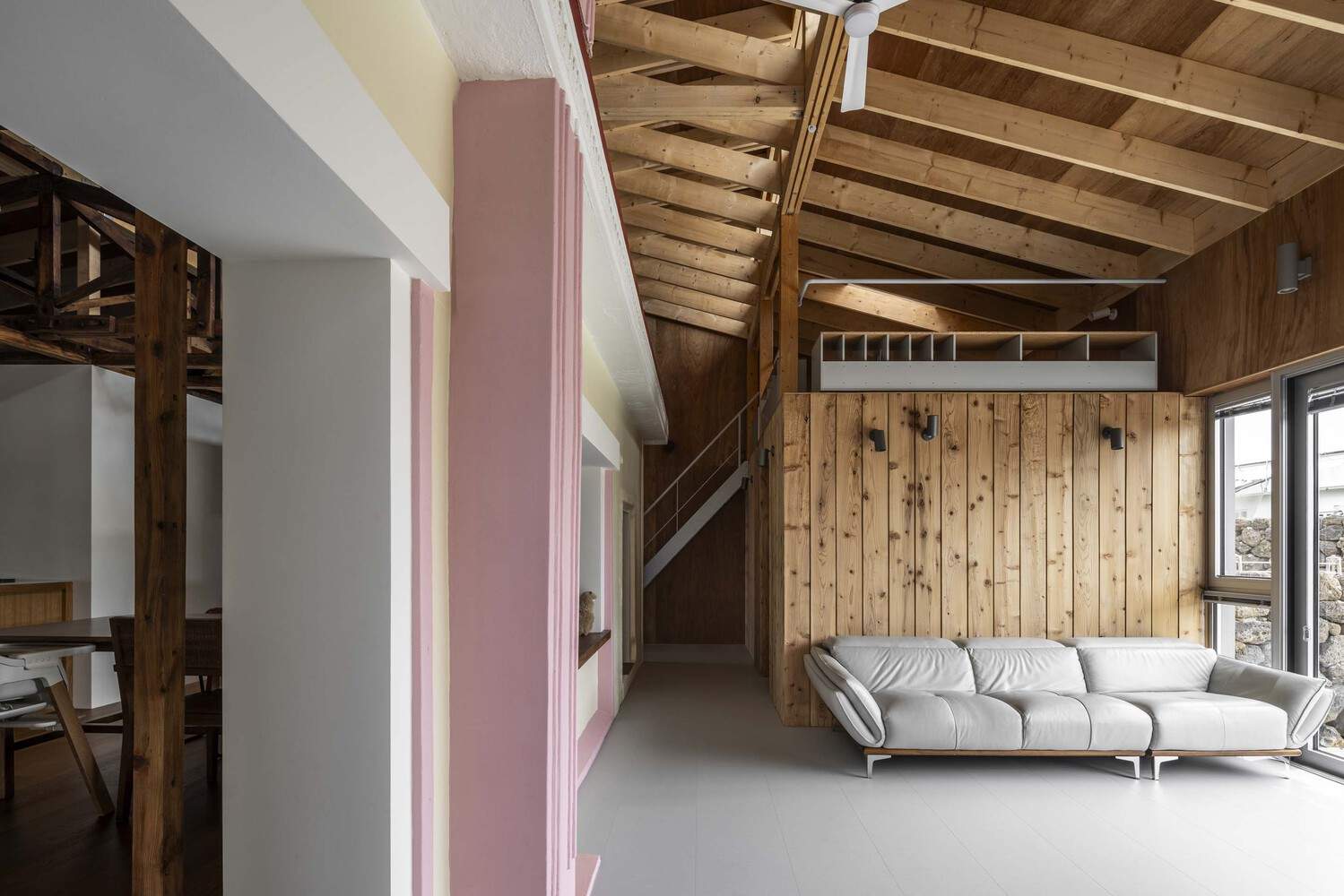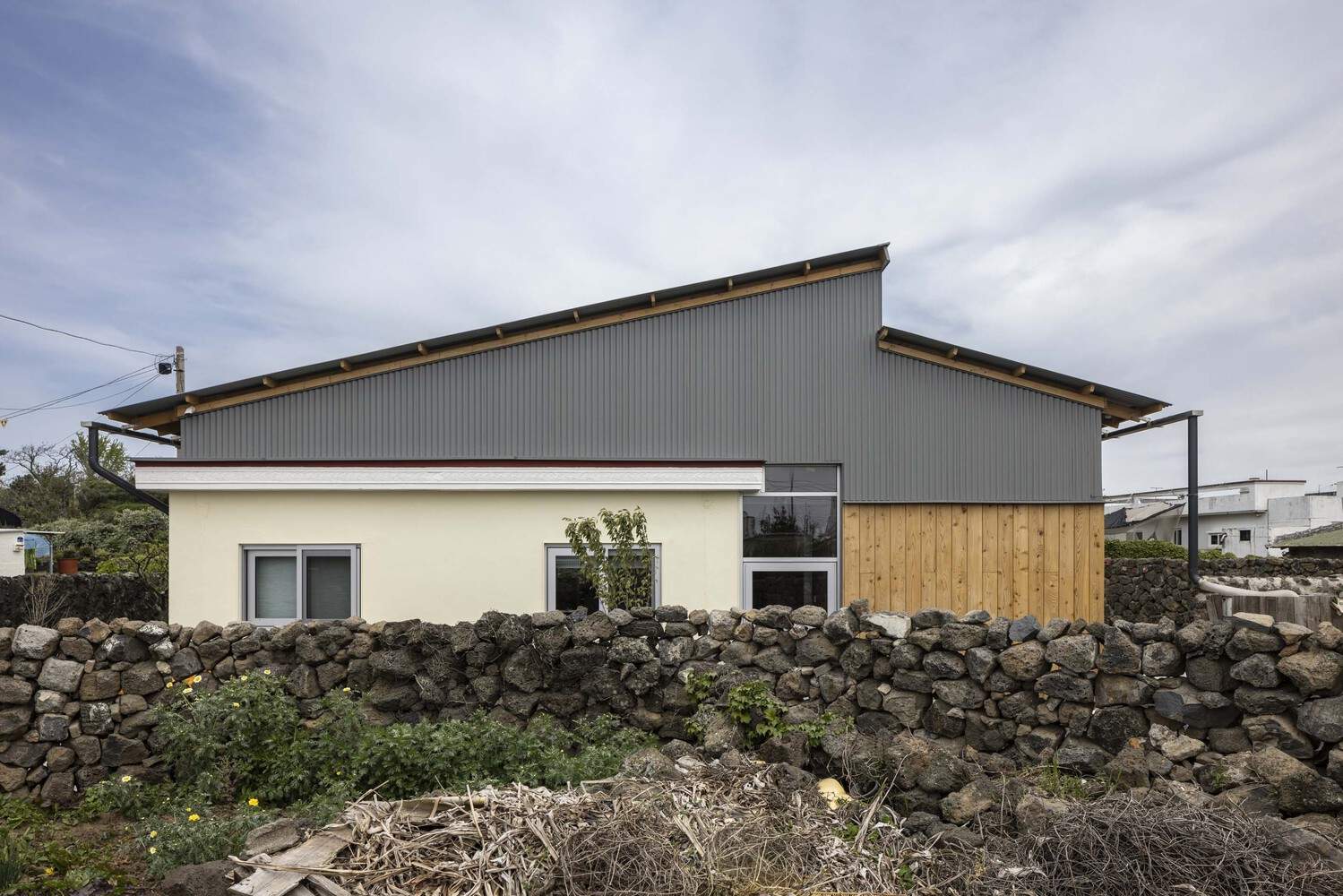 This house is constructed with the texture of traditional Jeju Island houses, creating a new living environment. By covering old buildings with new ones, it cleverly combines past and present, interior and exterior, old and new elements together.
