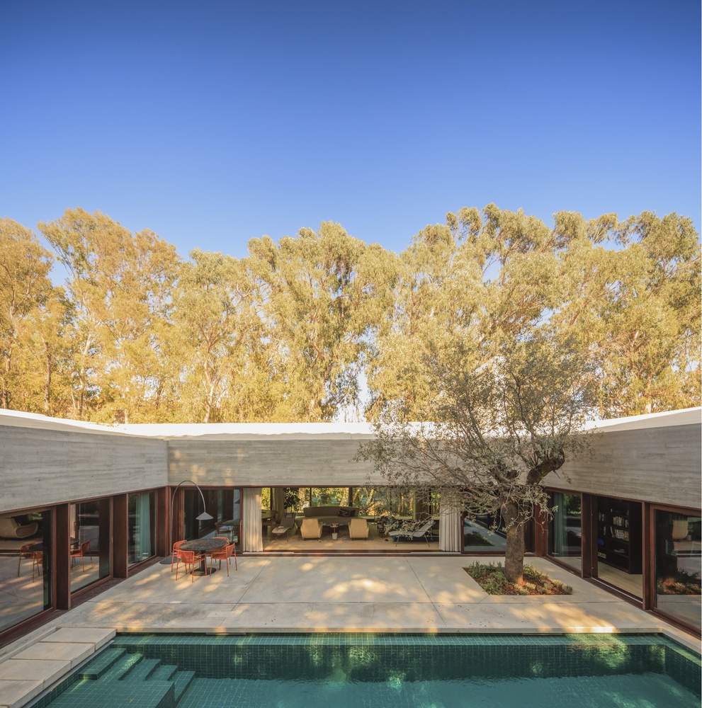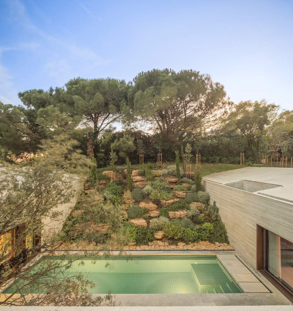 这栋房屋的设计策略涉及处理并调和人工与自然因素,设计团队相信通过规划中的调控与分布庭院来肯定和塑造建筑。理性主义的几何形状和体量突出了有利于居住空间的自然和环境价值。
