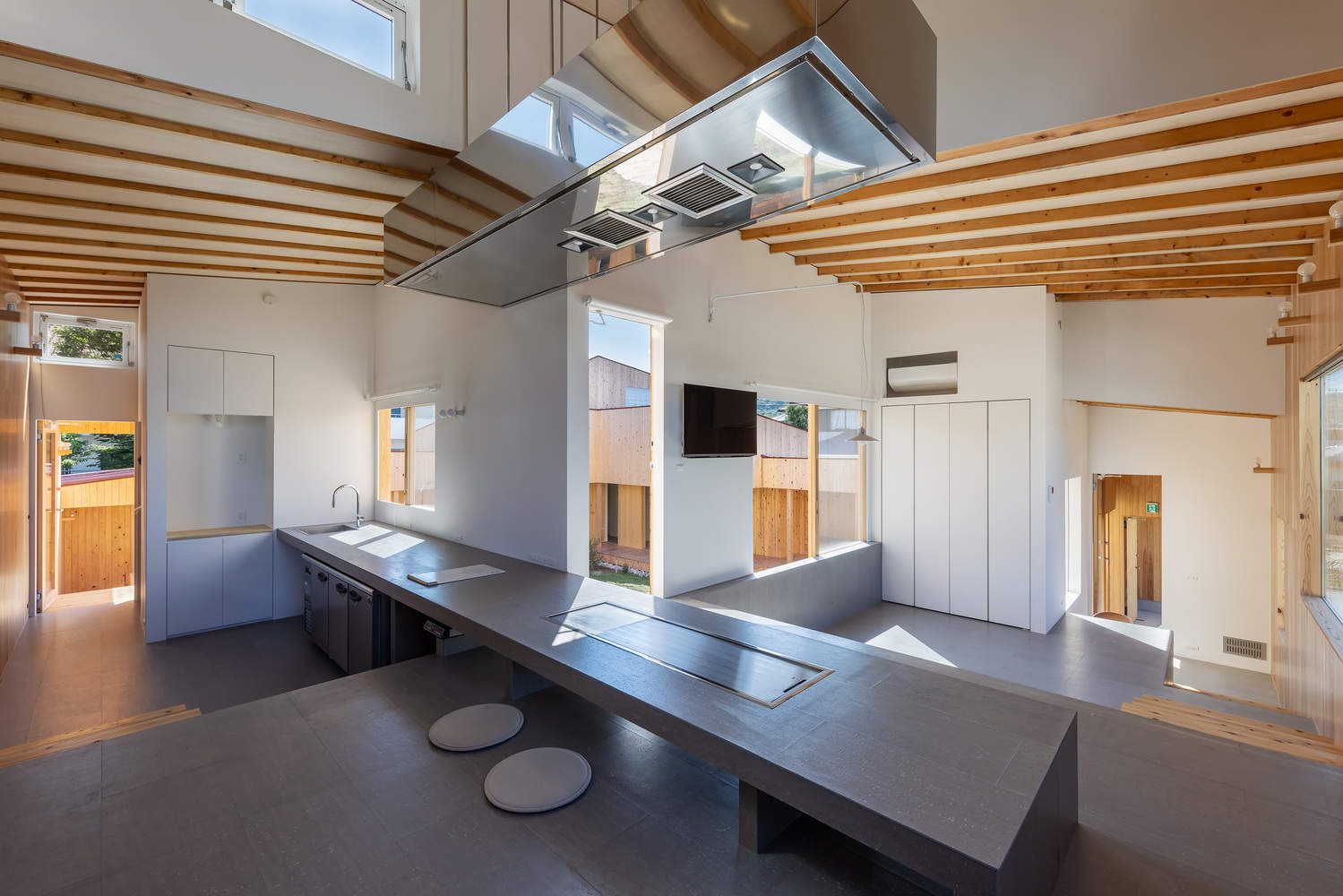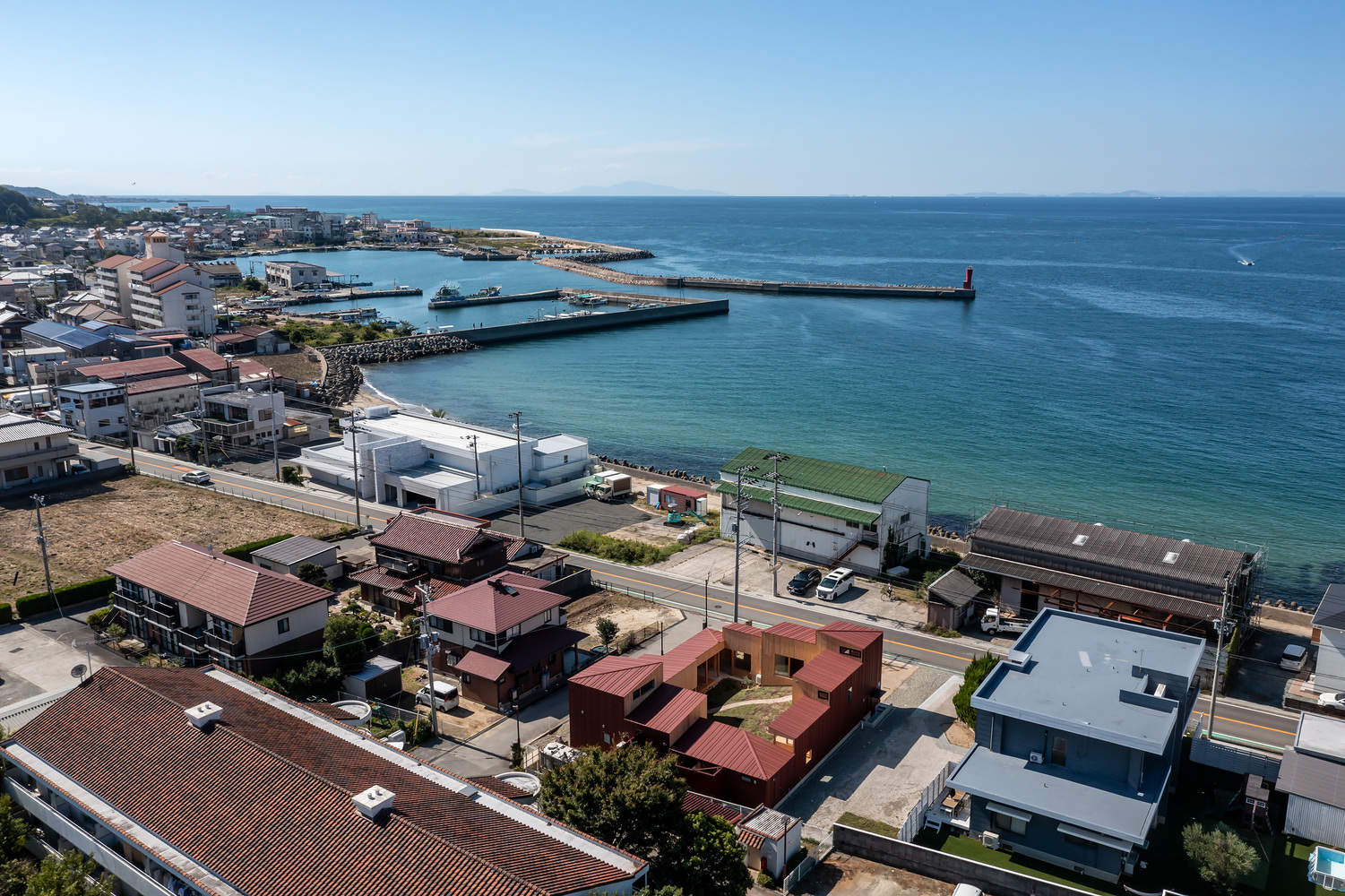 This site reflects the unique topographical features of the northern part of Awaji Island, where mountains and seas are connected. Due to limited flat land, dense housing, and close proximity to roads and residential areas, the road environment has a direct impact on the site. Therefore, the architect chose to design a courtyard style building as a protective buffer zone against the noisy road ahead and the surrounding residential areas. On the other hand, a large opening has been created on the street facing side to capture this constantly changing environment and the view towards the sea. These openings not only quietly introduce external reality into the interior, but also play a role in the internal space, visually connecting all internal spaces and creating interesting perspectives along the boundaries.