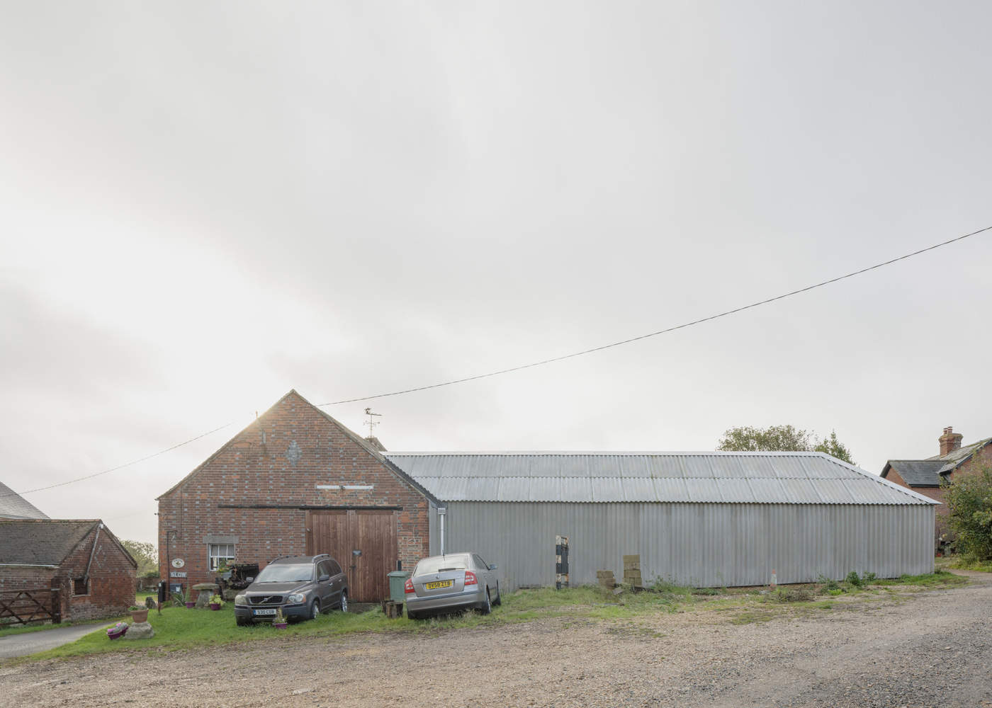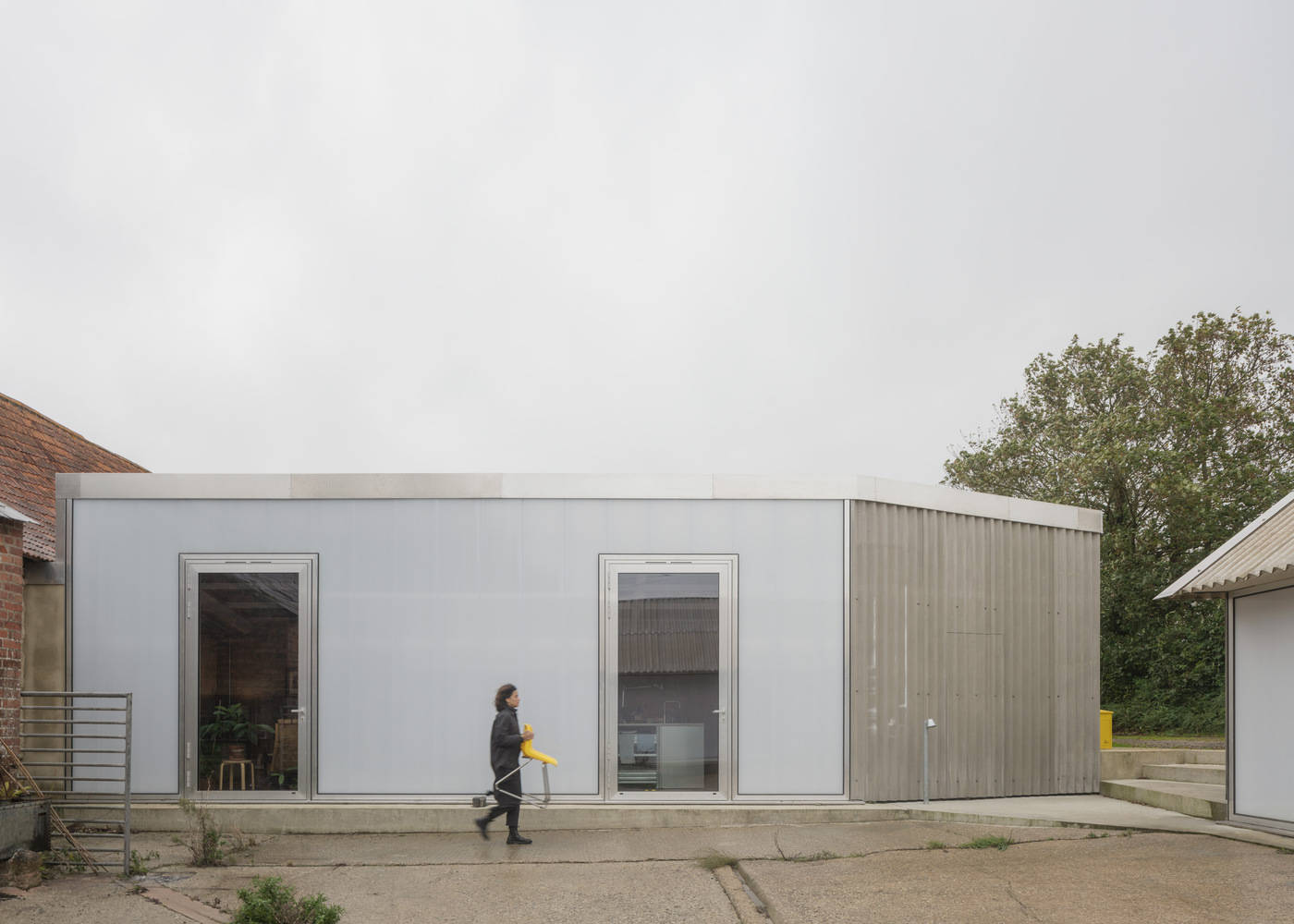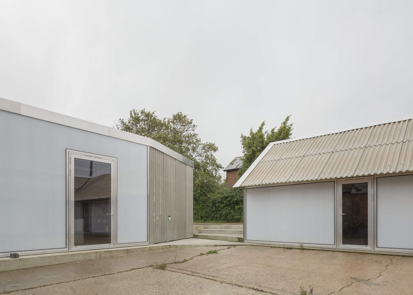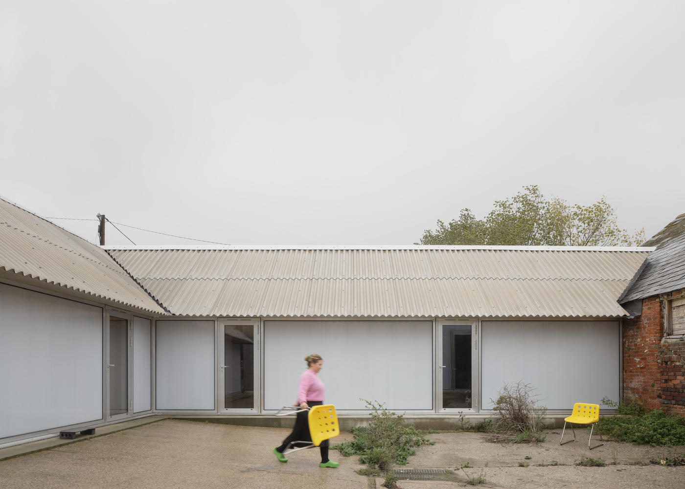 从外部看,The Old Byre 住宅与附近的其他农场建筑没有区别。然而,从中央庭院看,原来的地表和排水沟缝隙中生长着杂草,一个复杂的住宅外立面呈现出来,透过大型玻璃铝门与透明的聚碳酸酯外立面,连接着每个生活与工作空间,为每个区域提供了独立的入口。