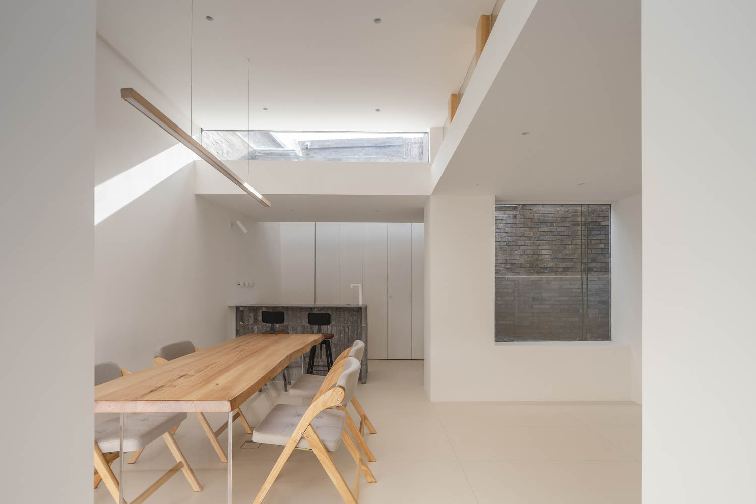 The project is located in a block of hutongs in the old city of Beijing, covering an area of approximately 97 square meters, surrounded by a large courtyard. Before taking over the project, other teams had already undergone a renovation, so this renovation belongs to a second optimization (re renovation). The current situation of the project is not ideal. There is a street facing window in the north room, and in addition, there are two skylights on each of the first and second floors. The skylights on the first floor are located in the square skylight in the corner of the south room and the circular skylight in the center. However, due to the lack of sufficient lighting and the limitations of the courtyard, the first impression given upon entering the space is oppressive, as if one is at the bottom of a well. The scale issue of the space itself is too narrow and high, resulting in a particularly noticeable echo effect and greatly reducing overall comfort.