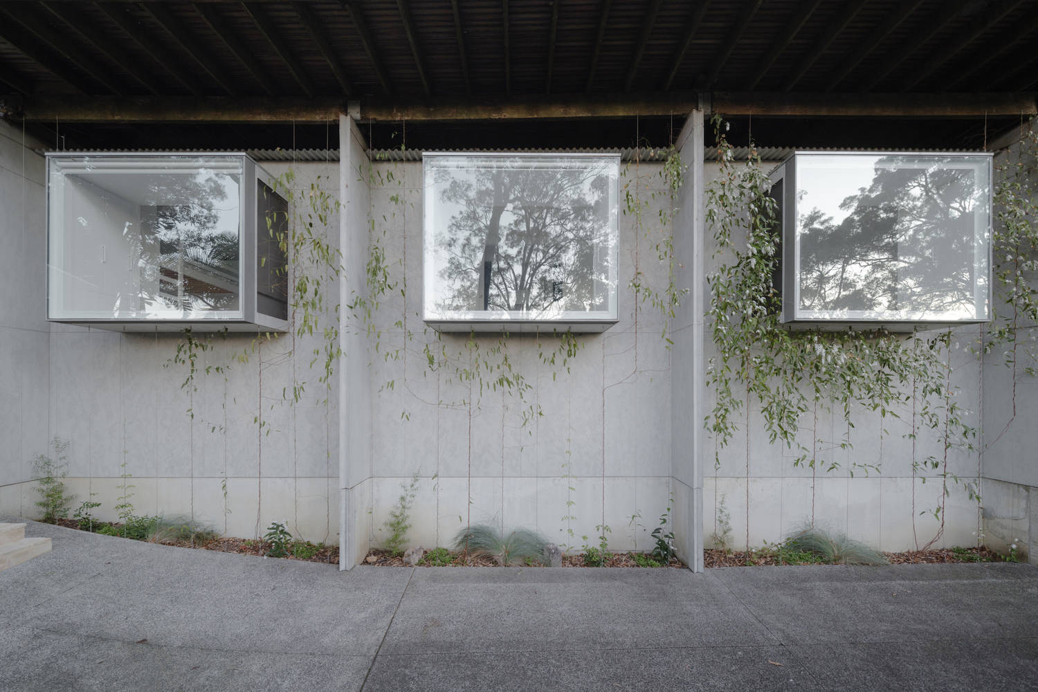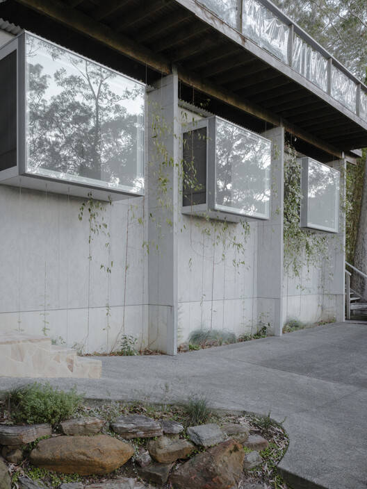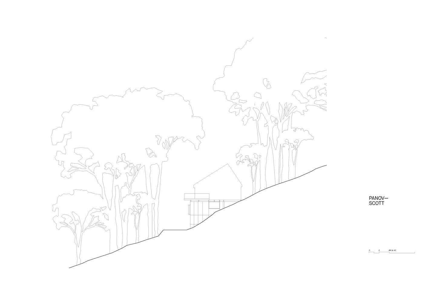 The site has a steep slope and faces northeast. Entering from the street below, passing through the already built front garden, one can overlook the bay. To the south is the national park, and the house is located below the narrow ridge of Green Point; This ridge can withstand south winds and limit the potential risk of severe wildfires.