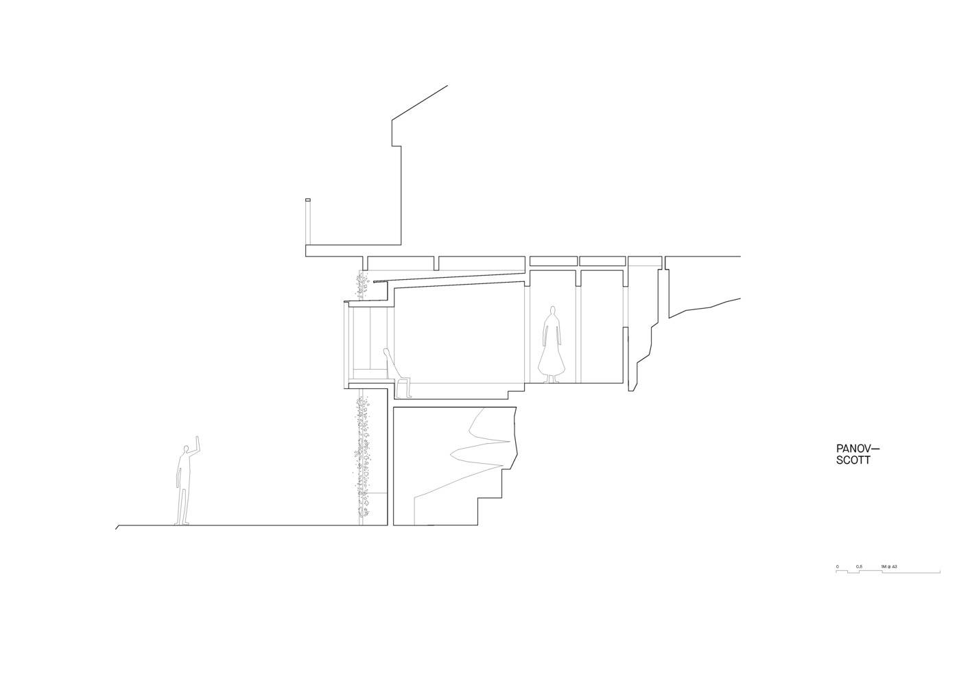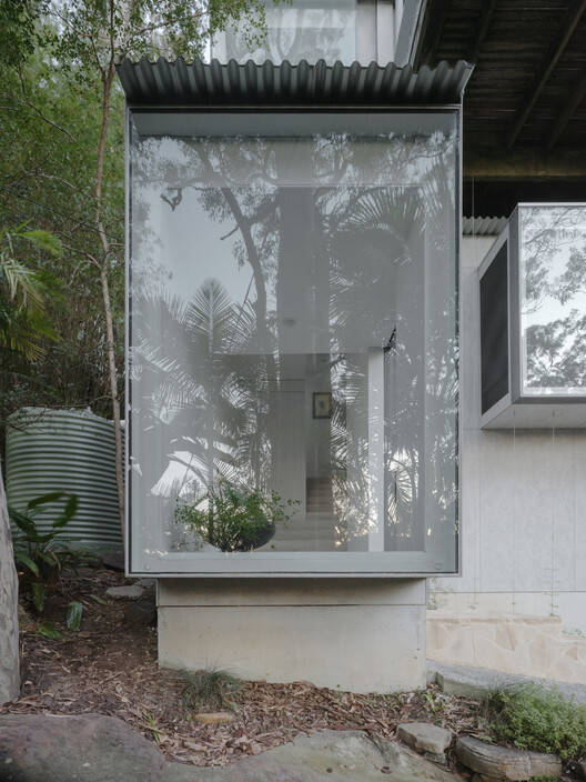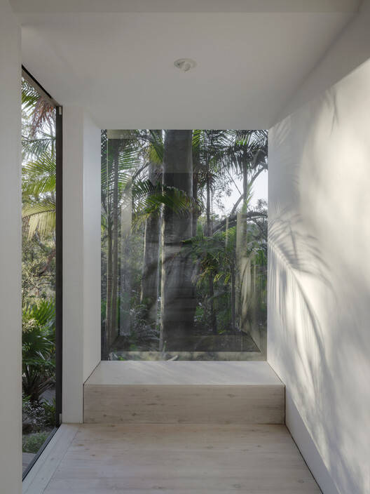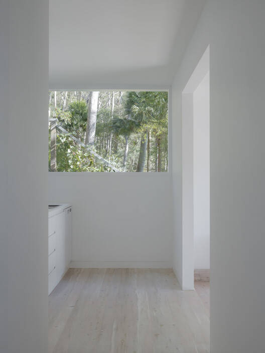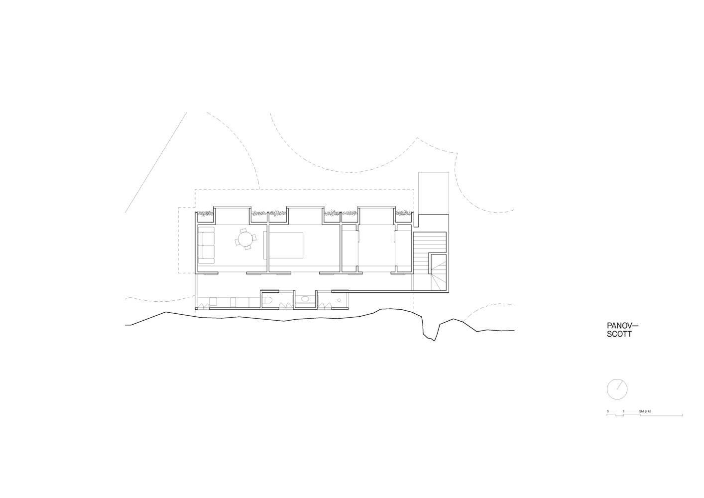 The site has a steep slope and faces northeast. Entering from the street below, passing through the already built front garden, one can overlook the bay. To the south is the national park, and the house is located below the narrow ridge of Green Point; This ridge can withstand south winds and limit the potential risk of severe wildfires.
