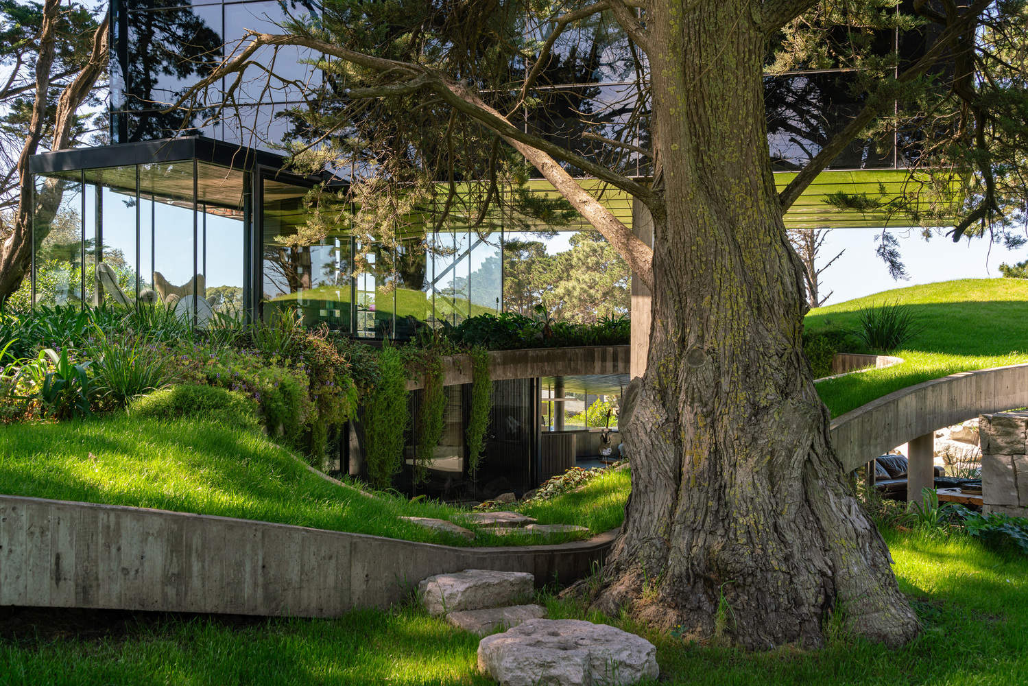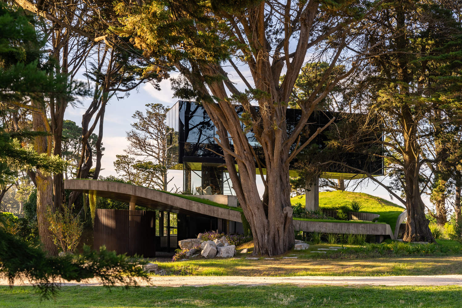设计理念与自然融合:莫罗住宅最令人印象深刻的方面在于其与环境的和谐统一。设计师巧妙地利用了地形的起伏,将建筑融入自然之中。首层混凝土外壳的设计,覆盖植被,使建筑与周围景观融为一体,减少了对现有开放空间的视觉干扰。这种“隐形”的处理手法,体现了对自然的尊重,将建筑视为环境的一部分,而非突兀的存在。项目的核心理念在于强调人与自然的共生关系,倡导在设计中保持对自然的敬畏,并主动寻求与自然的融合。