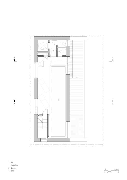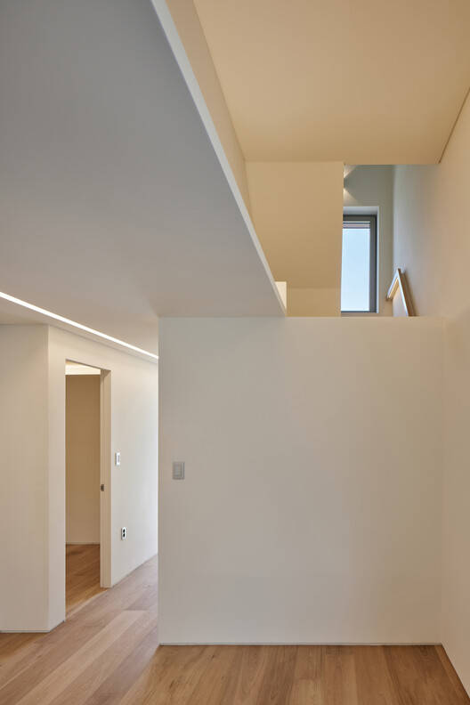 The iconic feature of this project is a private indoor swimming pool located on the top floor, which is 2 meters long and 10 meters wide. It is situated beneath a steep double pitched roof, with high side windows and ceilings creating a bright and peaceful resting place above the city. The concrete pool body of the swimming pool also plays the role of structural beams along the main axis of the building, enhancing the stability of the building structure. The lighting design adopts a layered layout - indirect lighting on the ceiling and underwater fixtures can create a variety of atmospheres, especially at night, which is particularly charming.
