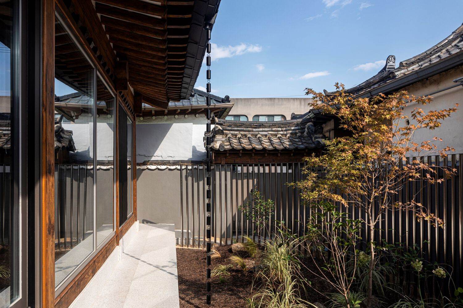 这个项目始于一个简单的问题:我们该如何打造一个空间,让人能在此开启一天的静谧沉思,能观察一方自然景致,感受柔和的阳光透过传统韩屋屋檐洒落?由此出发,我们关注的核心便转向了室内与室外的关系,以及建筑如何能在两者之间起到调和过渡的作用。