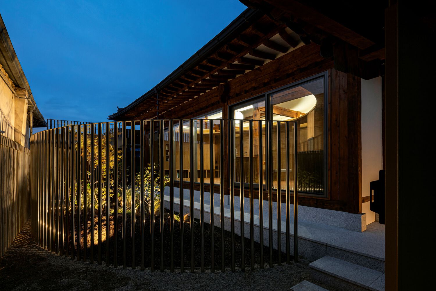 材料与细节的匠心独运:该项目在材料选择和细节处理上展现了极高的专业水准。对传统韩屋材料的运用,既是对历史文脉的尊重,又赋予了建筑独特的质感和韵味。设计师对光线的运用也极具匠心,通过屋檐的遮蔽,营造出柔和的光影效果,让空间更富诗意。精心挑选的家具和陈设,与建筑本身的设计语言相辅相成,进一步提升了空间的整体氛围。这种对细节的极致追求,不仅提升了建筑的美学价值,也为居住者带来了更为舒适和令人愉悦的感官体验。