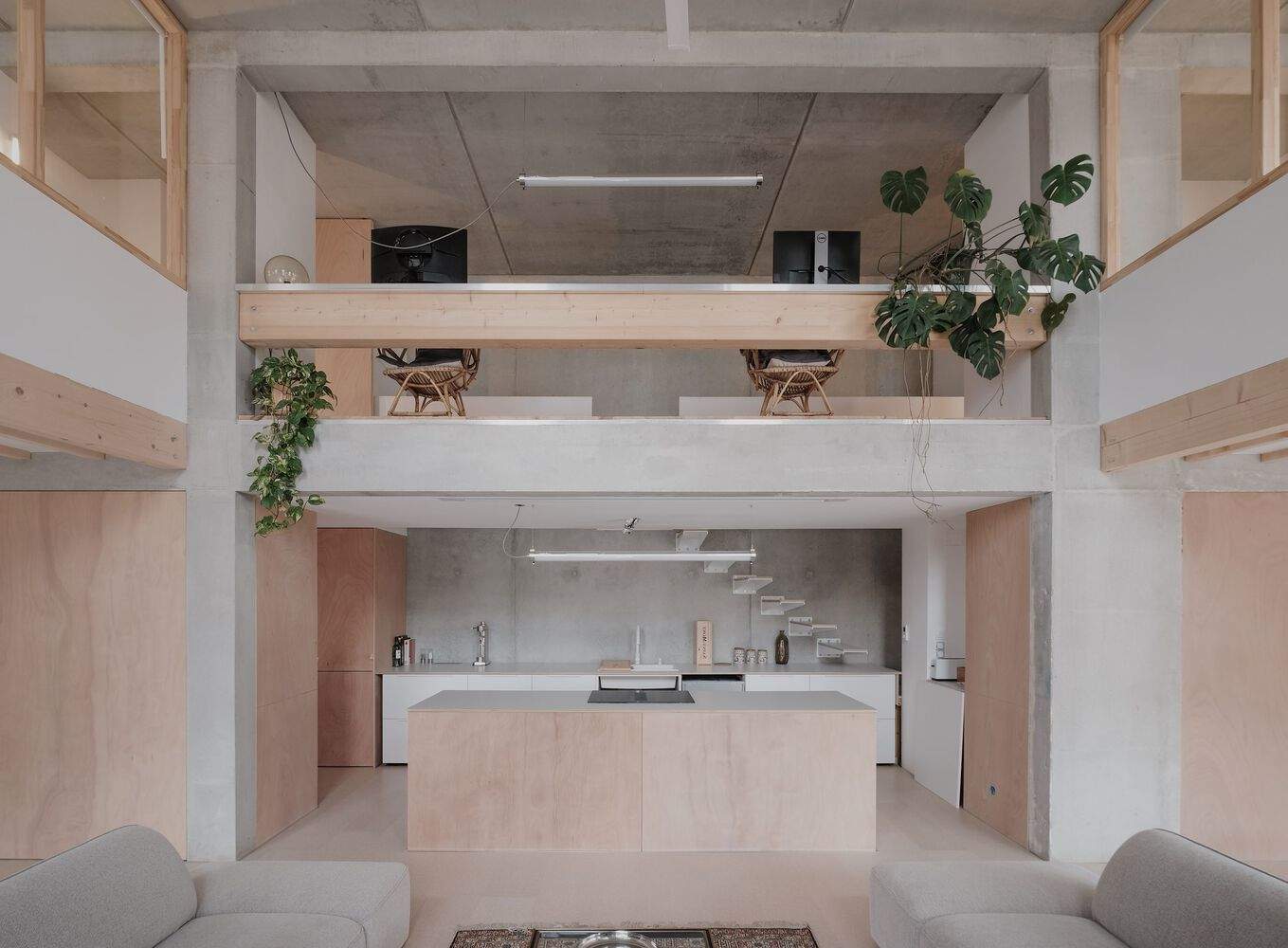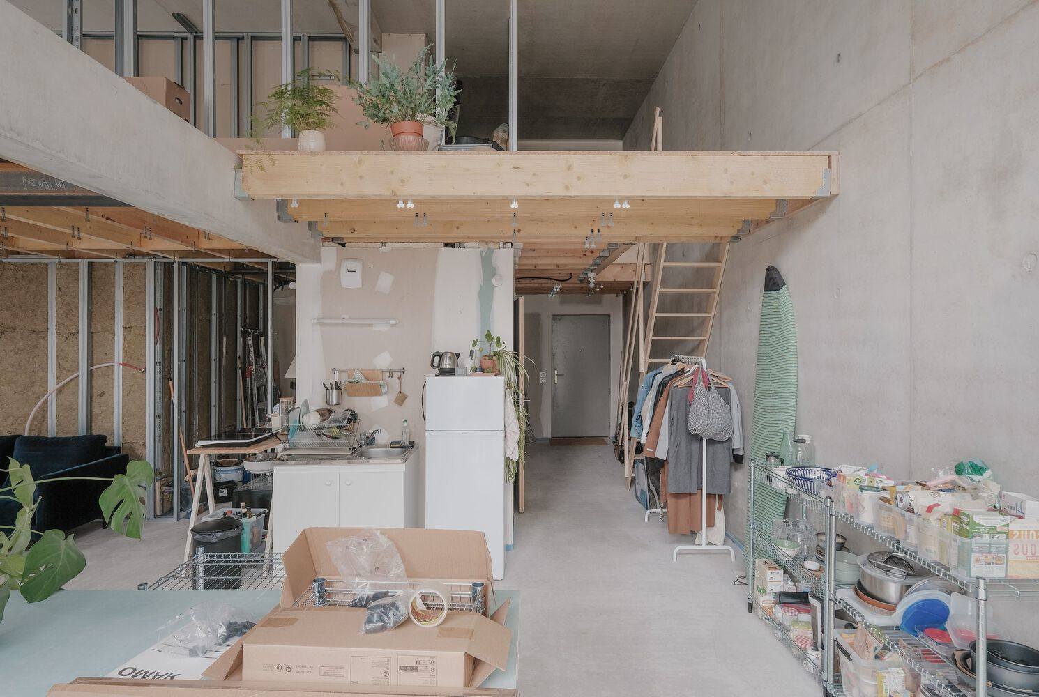 每个“功能空间”(Capable Volume)均被划分为两个独立区域,各自设有独立的入户门,且由一道可拆卸的内墙分隔开来。第一个区域为基础单元,符合现行建筑规范,可立即入住。第二个区域则作为大面积的空间储备,能够轻松扩展并转变为多样化的居住空间。从基础单元起步,每个家庭将逐步打造出属于自己的完整“功能空间”。随着时间的推移,夹层逐渐显现,向客厅上方大幅延伸,随后可重新分隔成新的房间,直至在所提出的最小户型中达到最大 90 平方米的面积,而在最大户型中则可扩展至 150 平方米。