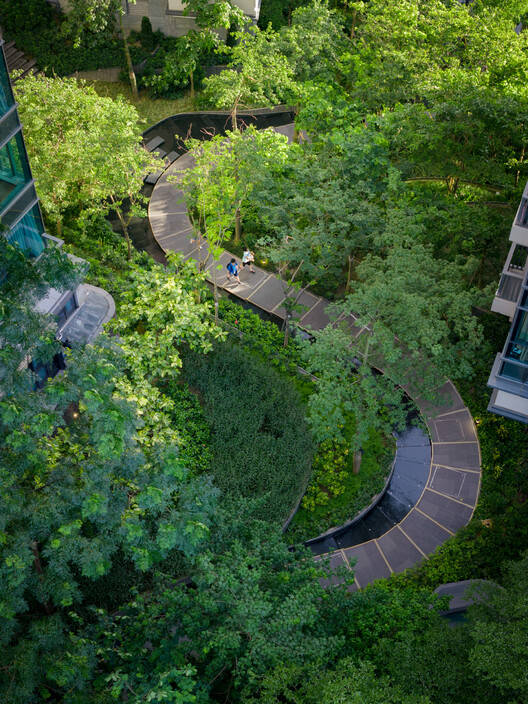 Le Pont 还设有一座互联互通的空中连廊,在屋顶层面将所有建筑连接起来 —— 这一建筑特色映射出山脊起伏流动的形态。犹如攀登顶峰一般,这条高架步道为居民提供了无与伦比的全景视野,可尽览天际线与周边绿意。与这一体验相得益彰的是,森林亭阁与茶亭的设计灵感源自传统的山间休憩站,为居民提供隐秘的休憩之所,让他们在享受无遮挡美景的同时得以放松身心。
