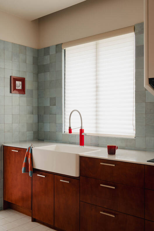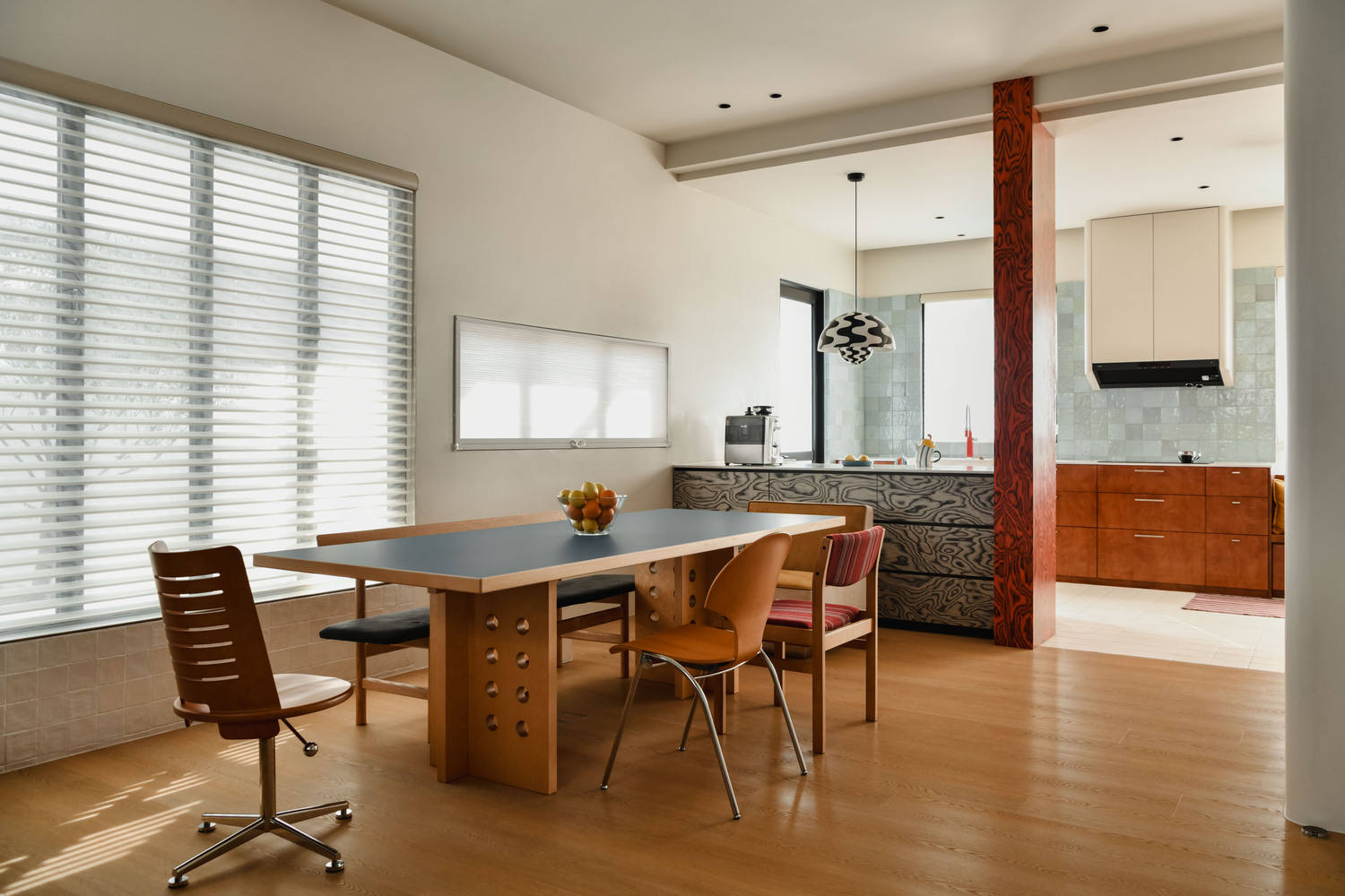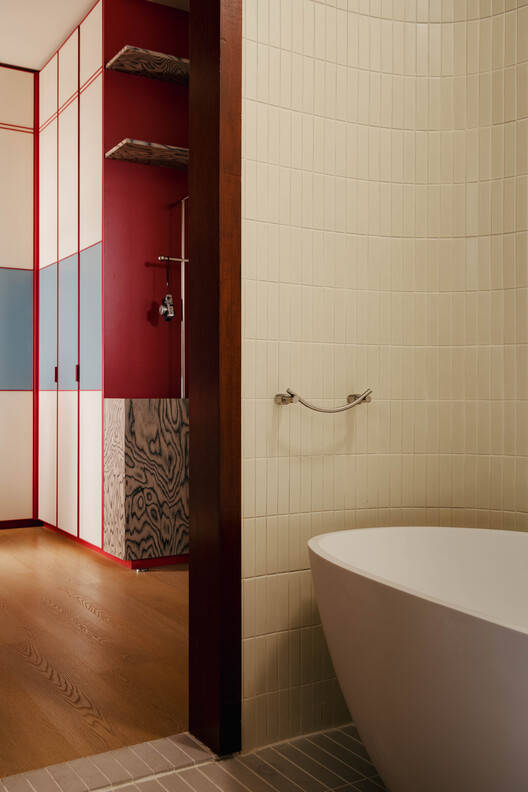A heartfelt tribute to mid-20th century modernism and a fresh interpretation of contemporary life - this residence is like a vivid painting, a deep tribute to the enduring charm of mid-20th century aesthetics, and has been carefully reconstructed to fit contemporary life. Its style is bold and fearless, with bright red, blue, and yellow colors interwoven throughout the interior - this is a tribute to the optimistic spirit, colorful colors, and dynamic composition demonstrated in mid-20th century design. These color tones not only serve a decorative purpose, but also infuse the space with a warm, personalized, and cheerful nostalgic atmosphere.