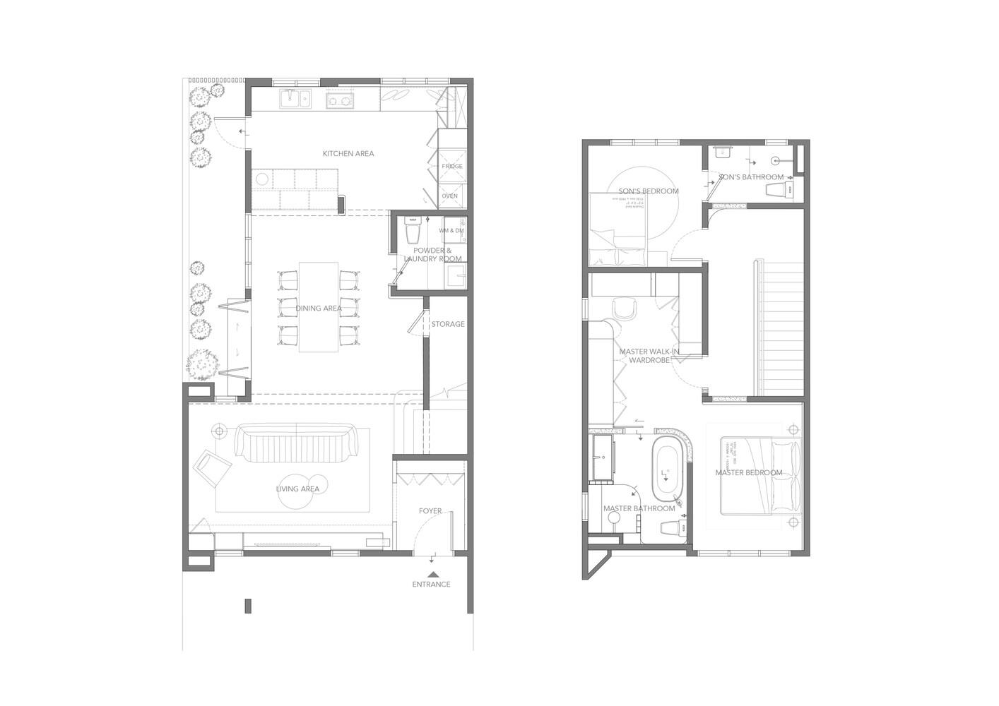 这一设计的核心在于,对当下马来西亚常见的高密度紧凑居住环境做出敏锐回应。在空间极为宝贵的情况下,周全的空间规划成为了该项目的基石。原有布局被重新构思,以营造开阔感、流动感和通透感。通过拆除客厅、餐厅和厨房区域之间的隔墙,如今,这座住宅成为一个连贯的开放式空间,尽管占地面积有限,却促进了社交互动,传递出一种豁达大气的空间感受。
