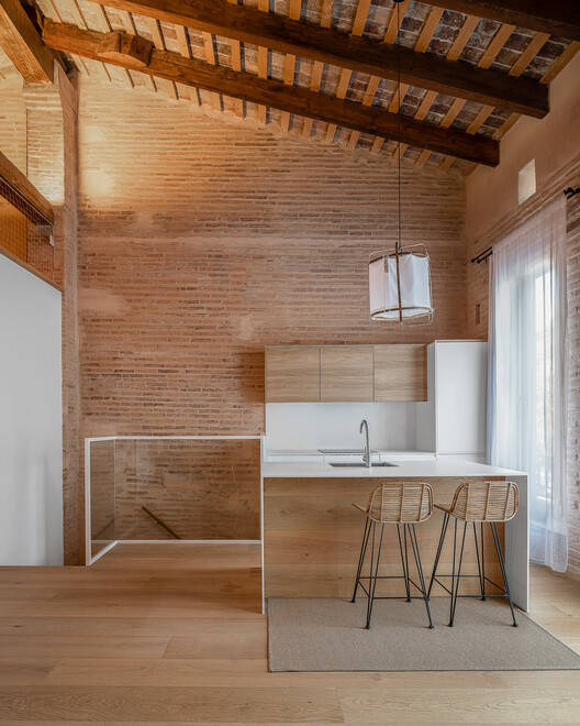历史与现代的和谐统一: 这次瓦伦西亚旧冰库的改造项目,体现了建筑师对历史文脉的尊重和对现代生活方式的理解。项目最引人注目的亮点在于对原有建筑结构的保留与再利用。建筑师巧妙地将旧冰库的原始元素,如裸露的砖墙、木梁等,与现代设计语言相结合。这种手法不仅保留了建筑的历史印记,也赋予了空间独特的韵味。通过对原有材料的细致处理,建筑师成功地创造了一种既复古又现代的居住体验,实现了历史与现代的和谐统一,为旧建筑的改造提供了极具参考价值的范例。