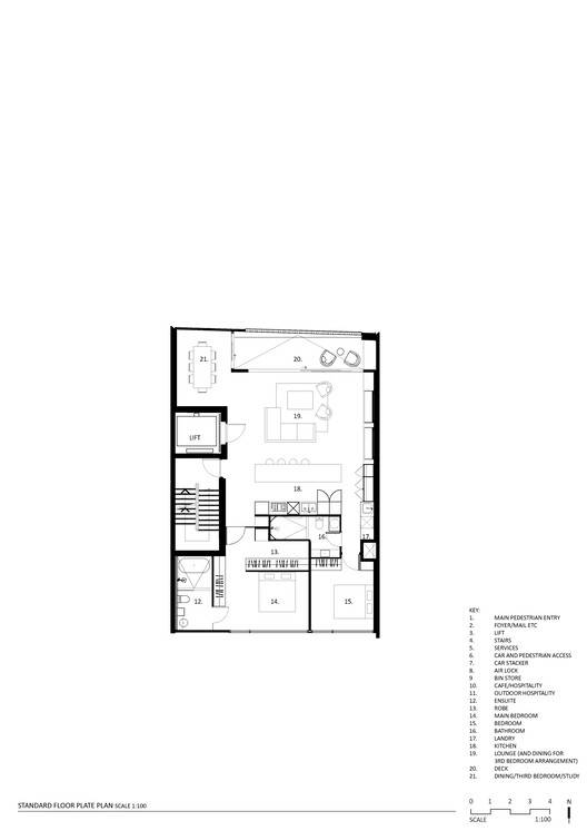 为了扩大吸引力,特别是考虑到靠近火车,我们将卧室和浴室分开,增加了第三个可分离房间的可能性,并增加了一定程度的存储/自行车空间,也吸引了学生或个人共享。虽然功能齐全,但这种布局对于在未来的情况下达到所需的光照水平也是至关重要的,因为在未来的情况下,北面的私人土地应该扩建,并产生极好的交叉通风。