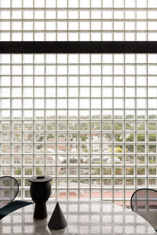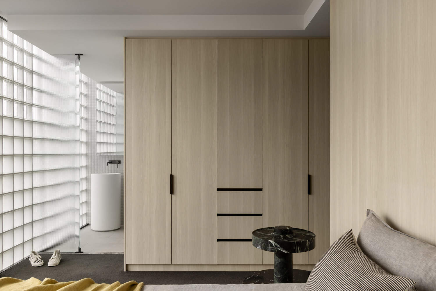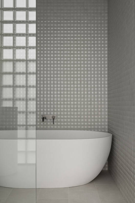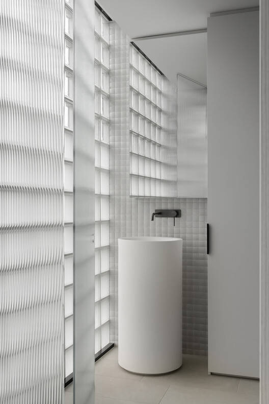 The language of architectural grid is applied to the interior material palette through wooden paneling, natural stone, and ceramic tiles. Glass bricks present a unique interior decoration, creating brilliant and varied lighting effects throughout the day. Realize light penetration through the floor through textured glass doors and interior walls. The upper level is a customized top-level apartment, with a residential building consisting of two floors. Despite the high modular efficiency of the building, it still maintains its uniqueness.