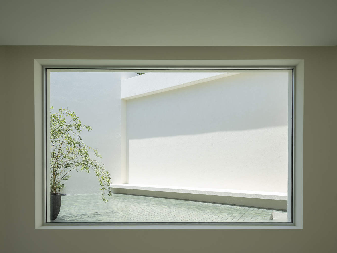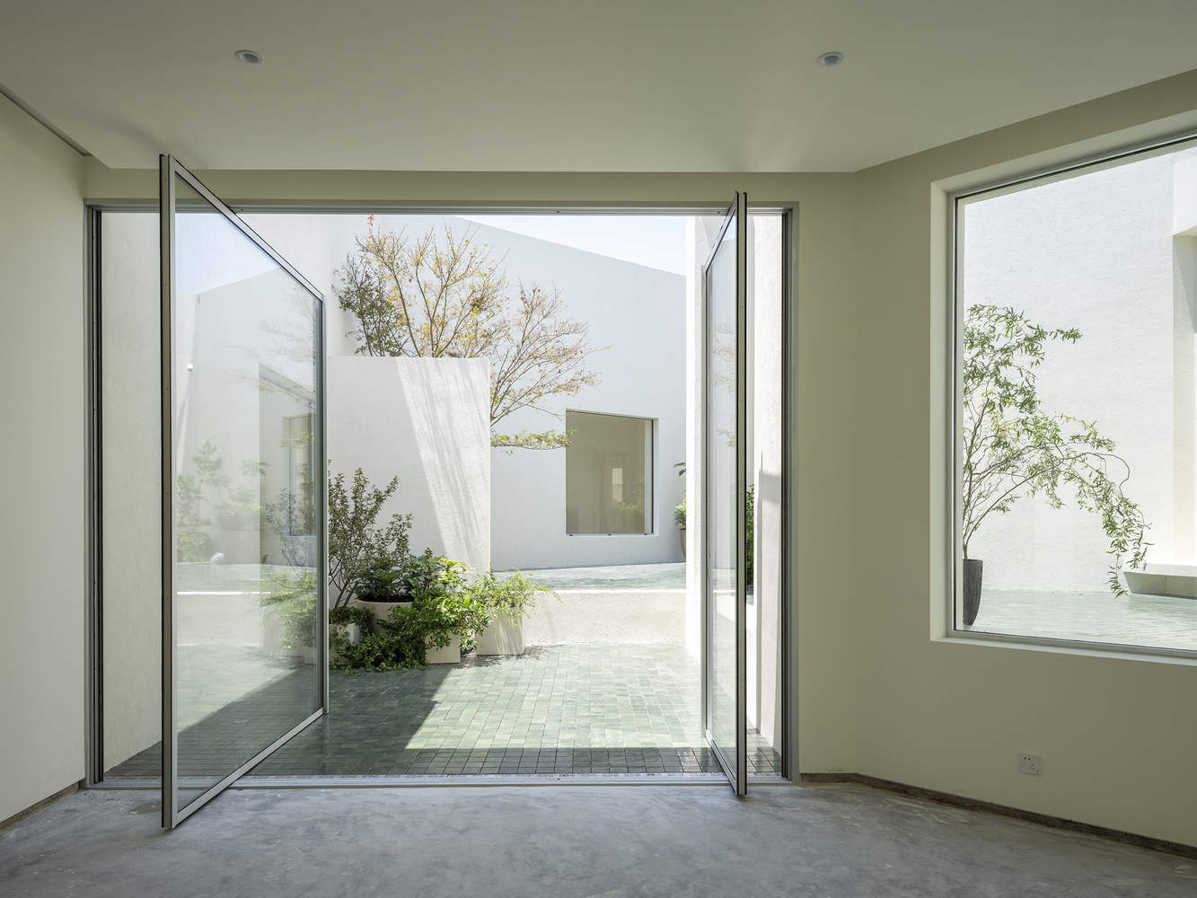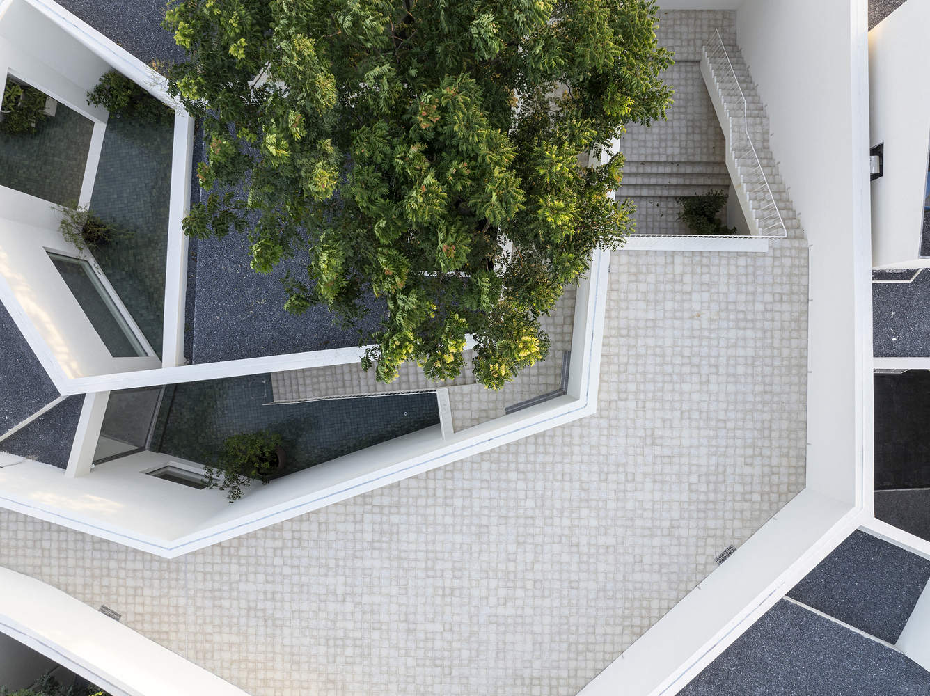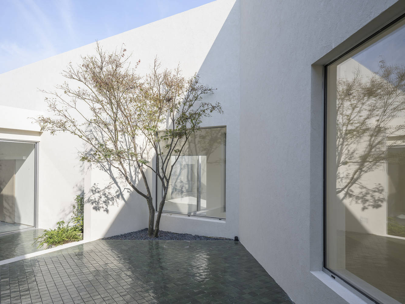 中心庭院的 13 棵细枝的树木 15 年来仿佛变成了一棵树,伴随着建筑的时间并适应着空间向上生长,是建筑不变的使用者。