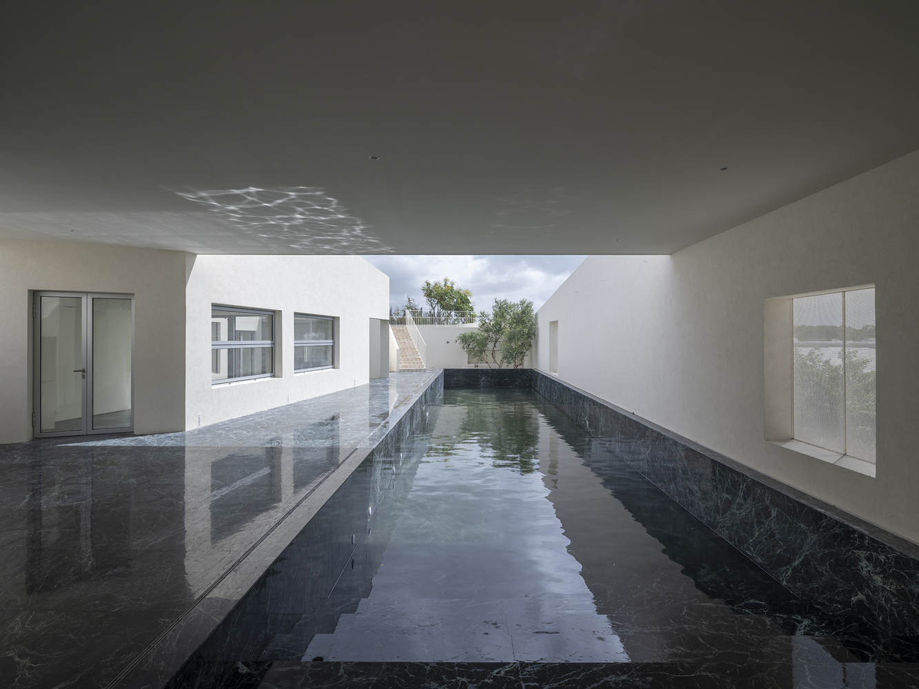 Due to the excavation of the water pool, the soil is balanced on site and a small hill is piled up according to the intention of spatial experience. The spiral space undulates accordingly, and the architecture and terrain together form a subtle and weak "rockery" that allows people's bodies to feel the ups and downs, is open and continuous, and the "winding path maze garden" is formed.