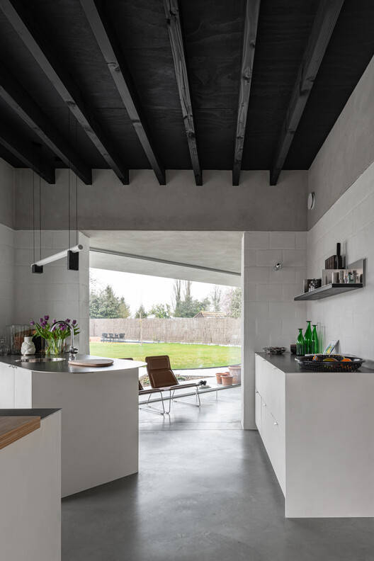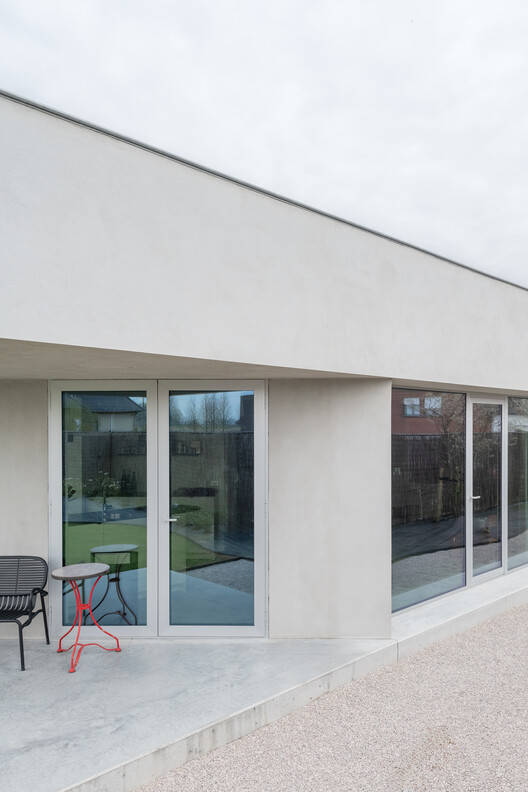 色彩与材质的和谐统一: 住宅的色彩搭配和材料选择,体现了设计师对居住者生活方式的深刻洞察。简洁素雅的色彩基调,为艺术品和装饰品的展示创造了理想的背景,使居住者的收藏品成为视觉焦点。统一的地面材质,延伸了室内外的空间界限,增强了房屋、露台和花园之间的整体协调性。精心设计的矩形檐口,则为各个房间提供了独特的“华盖”,进一步强化了整体的视觉统一性。这种对色彩、材质和光线的巧妙运用,打造出一种宁静、舒适、且充满艺术氛围的居住环境,满足了居住者对高品质生活的追求。