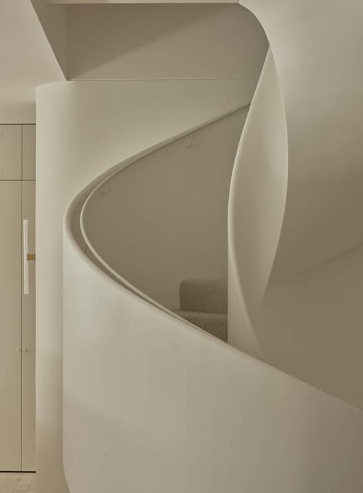 空间叙事与感官体验: 项目的核心在于创造一种与日常生活节奏同步的“仪式感”。设计师将建筑空间分解为一系列相互关联又相对独立的区域,每个区域都承载着特定的功能和情感。例如,健身房和洗衣区与葱郁的绿地相连,步入式淋浴间沐浴在阳光之中,起居室则被打造成宁静的休憩之所。这种精心的空间布局和细节设计,旨在提升居住者的感官体验,营造出一种舒适、放松和充满仪式感的氛围。这种以人为本的设计理念,体现了建筑师对客户生活方式的深刻理解和对空间叙事的独特见解。