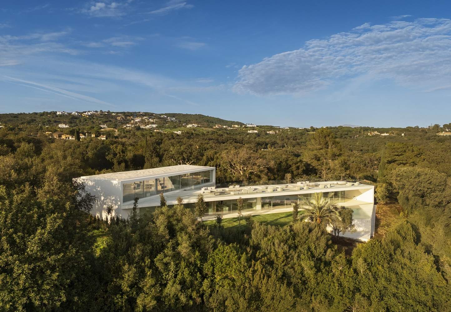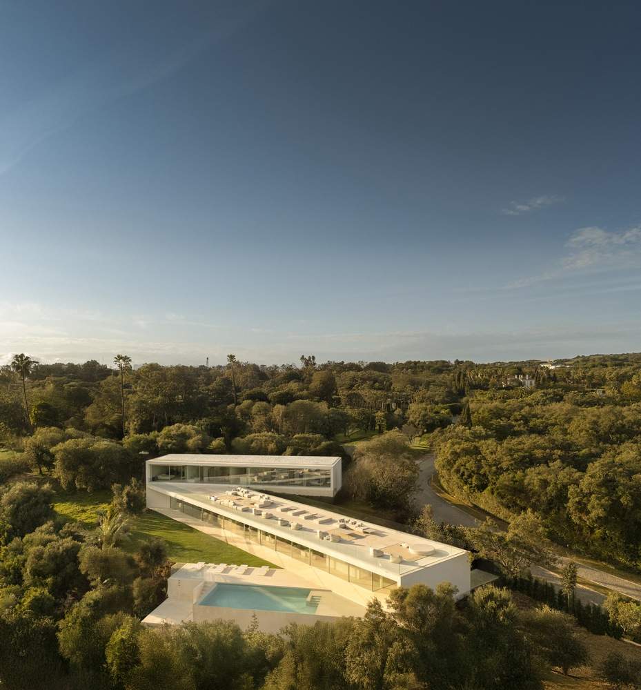 From the architect. The Villa 95 project is located on an irregularly shaped plot of land in Altos de Valderrama, Sotogrande. From the beginning, the main premise was to maximize the relationship between the house and the natural environment, seeking integration between daily life and the place. The site has a slight slope, which gives it a great depth of landscape.