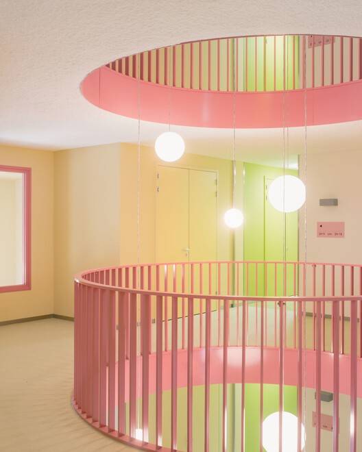 These compact apartments are accessed through a corridor extending from the central hall of the building, which has a circular atrium in the center. The vertical building facade presents rich visual effects through bright and optimistic colors and delicate texture layers. The elegant brick masonry details are not only sturdy, durable, efficient and practical, but also conceived and designed from the perspective of architectural construction technology. The pattern of rising pillars and horizontal stripes is made of specially shaped bricks, and the nodes are raised to create a delicate element, enhancing the tactile and scale sense of the facade.