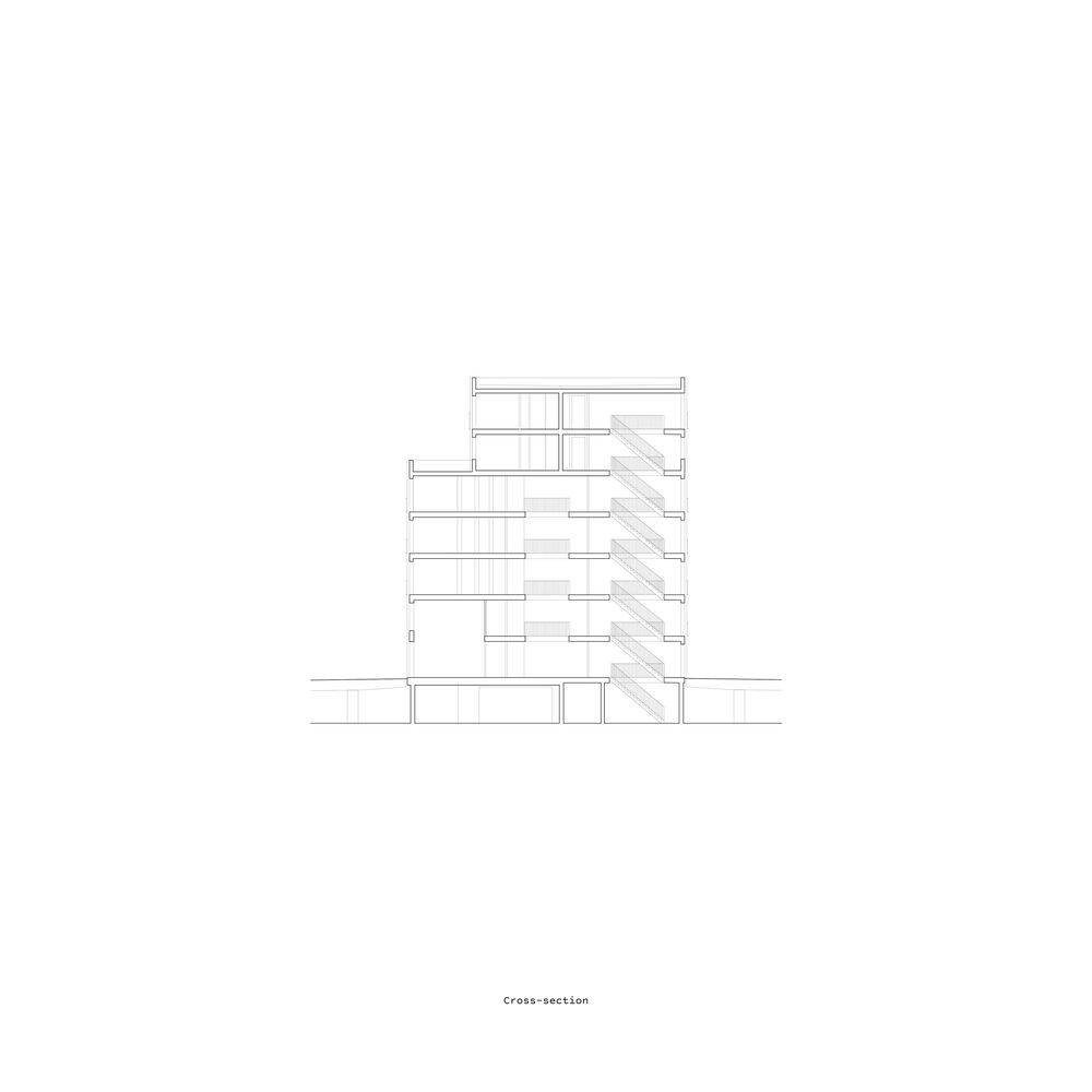 中间那栋拥有一百零八个单元的建筑是该开发项目的收官之作,它建造于一个停车库的顶棚之上。这栋狭长的建筑由两部分组成,经过精心设计,巧妙地嵌入其他建筑之间。在充分利用可用空间的同时,还确保了各建筑之间能保持充足的采光和开阔的视野。