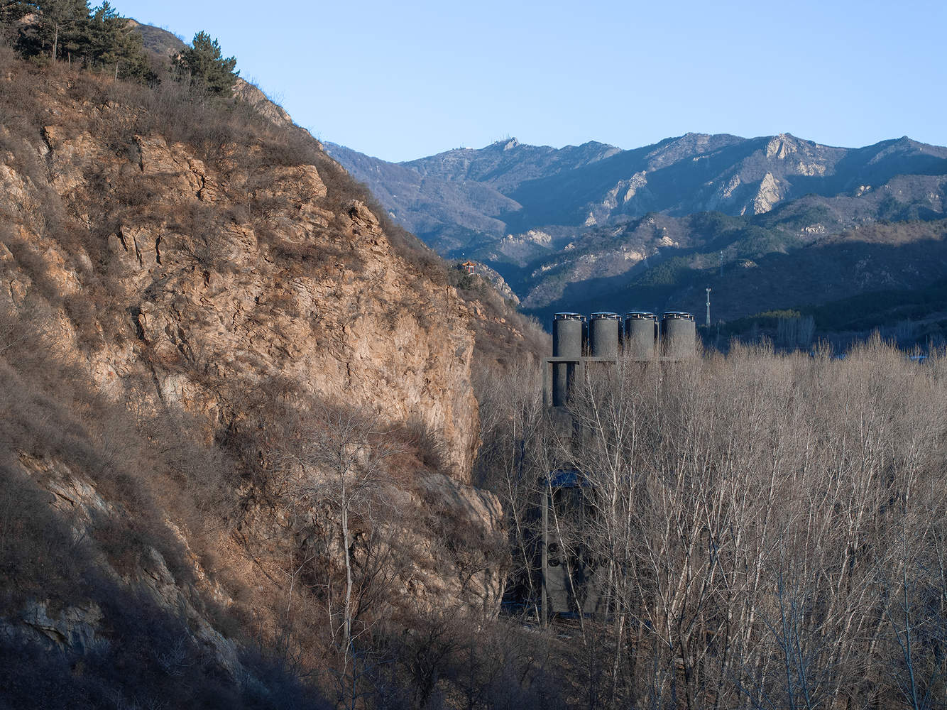 Yanshi Tangquan is located on a slope at the foot of Wuling Mountain, a branch of the Yanshan Mountains in northern Beijing. It is adjacent to a cliff on the west side and a valley alluvial plain on the east side. The site is located at the junction of natural landscapes and residential areas, surrounded by dense poplar forests. The surface is covered with reeds and weeds, with rolling stones scattered among them. A winding stream flows from north to south. Not far from the outer edge of the forest is the newly built vacation community in Anaya. From a high altitude, the undulating mountains appear and disappear in the clouds and mist. People traveling from the community to Tangquan need to take a path through the forest, pass through the poplar forest, and enter an open area. Almost vertical cliffs suddenly appear ahead, as if entering a "secret realm".