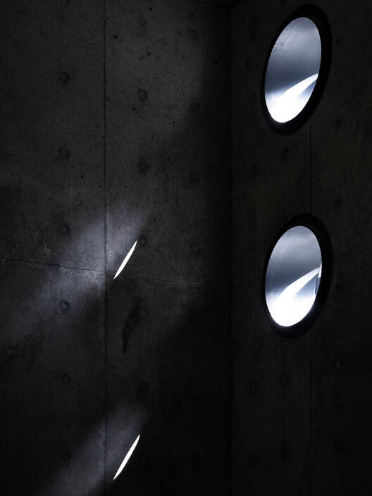 材料与细节的匠心:该项目在材料选择和细节处理上体现了卓越的匠心。暴露的混凝土经过精细的深凿毛处理,呈现出独特的岩石质感,既呼应了周围的地貌特征,也赋予了建筑一种原始而坚固的美感。柚木“盒子”的设计,既是更衣区,也是空间的核心,其材质的运用与混凝土形成了对比,增添了空间的层次感。而圆盘吊灯的设计,不仅提供了照明功能,也暗示了建筑顶部光筒的存在,体现了设计上的统一性。每一个细节都经过精心考量,共同营造出了一种超越日常生活的独特感受,让建筑本身成为连接人与自然、连接社区与文化的纽带。