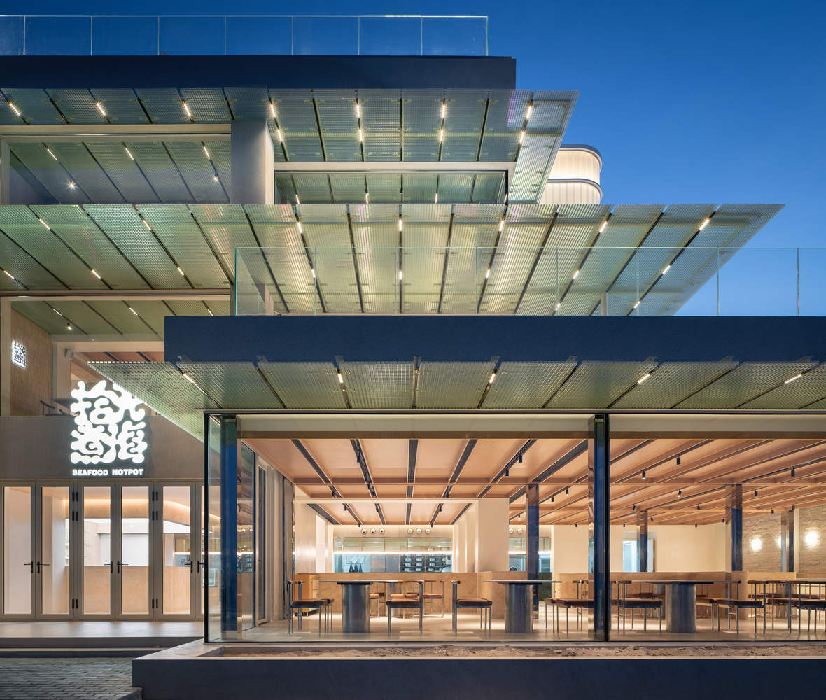 The project is a reconstruction of a three storey building, which can accommodate two stores: the first and second floors are Seafood hot-pot stores, and the third floor and roof terrace are used as dining bar space. The two stores operate independently and cannot have any influence on each other. So the first step in the renovation is to consider how to plan the two flow lines so that they are independent and not conflicting with each other. It is necessary to consider adding an additional vertical traffic to bypass the first and second floors and directly lead to the third floor.