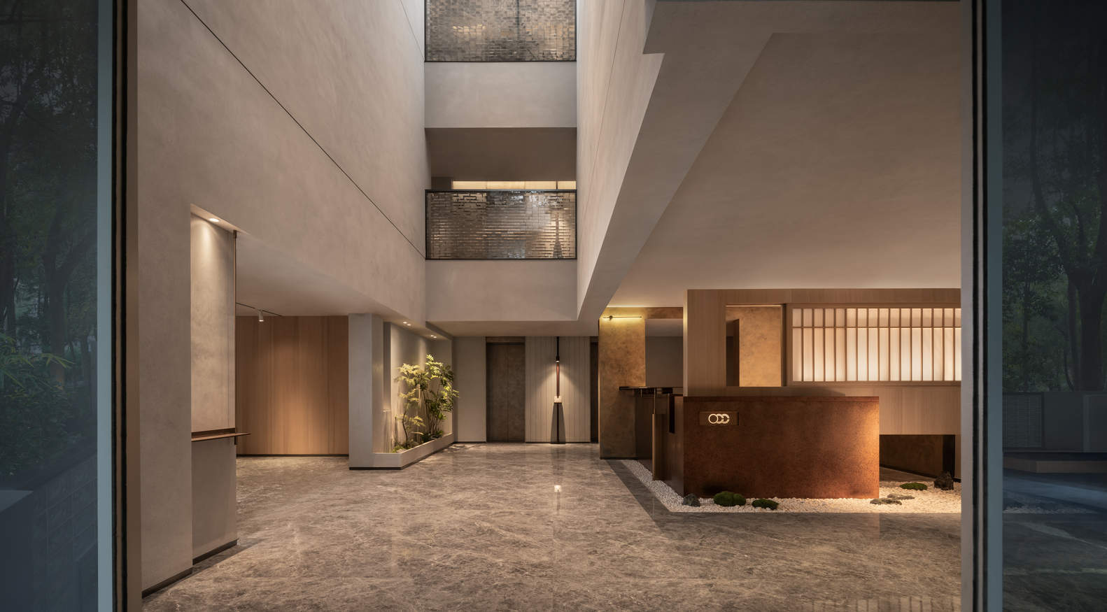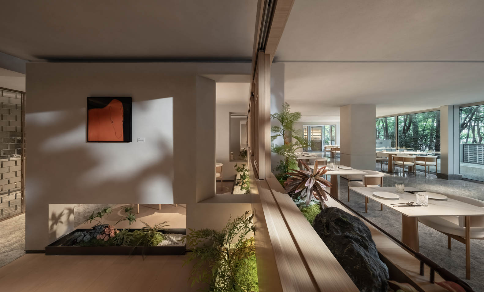 空间整体呈现出一种“缓步渗透”的空间过渡感:从开放的城市公共空间,到围合的庭院,再到通透的室内区域,层层嵌套,借鉴了传统园林的“园中园”结构,既传承历史,又注入现代生活方式的体验。