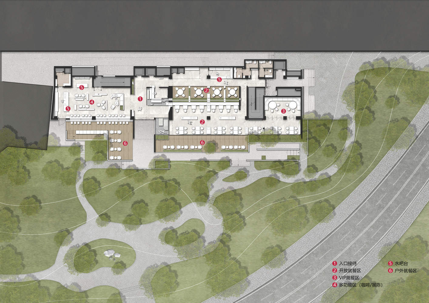 The unique natural and urban landscape of the site provides multiple narrative possibilities for the design: up close are lush tree crowns and mottled light and shadow, while in the distance are faint reflections of the red walls of the Drum Tower. The challenge for the design team is how to respond to the energy of the site while weakening the boundaries between architecture, landscape, and interior. By "dissolving" the architectural form, natural and humanistic qualities are introduced into the site, blurring the boundaries of traditional dining spaces and creating a composite operational space that combines multiple experiences.