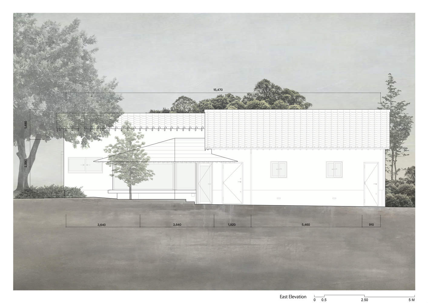 The project site is located in Miyamae Garden City, Kawasaki City, Kanagawa Prefecture. Here, the existing traditional residential houses and agricultural warehouses are adjacent to vegetable gardens and farmland, preserving a rare and untouched post-war style in the constantly developing urban structure of the Tokyo metropolitan area. This nostalgic atmosphere and feeling are both the starting point and underlying philosophy of the project.