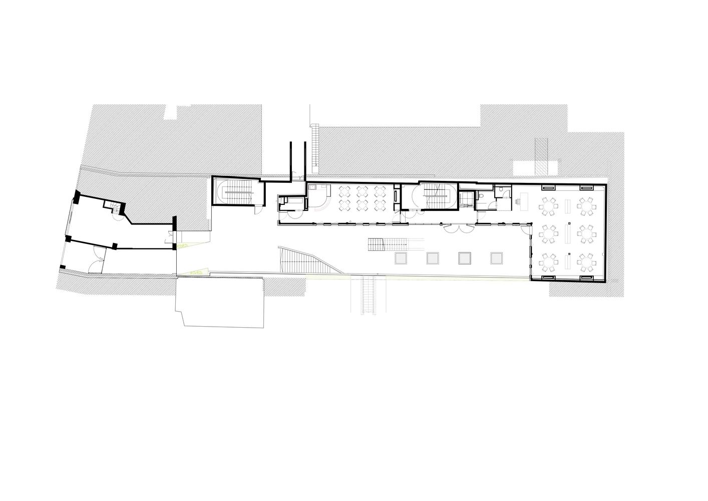 该项目将教育空间置于世界时尚之都中心,将传统与创新完美融合,从而重新定义了教育空间。校园被设计成一个充满活力的基础设施,鼓励探索和透明化。它不仅仅是一个学习场所,更是时尚与艺术的国际展示平台。因此,其建筑设计放大了学校各种媒介之间的互动、协同和创造力:织物、材料、光线、动感和对比。设计并未受场地限制的束缚,而是致力于将其转化为创新的机会。俯瞰花园的楼梯成为一个独特的混合空间,可供反思和激发灵感,鼓励偶然发现、自发相遇,并促进整体的创意协同,所有这些都围绕着大胆流畅的功能组织构建。