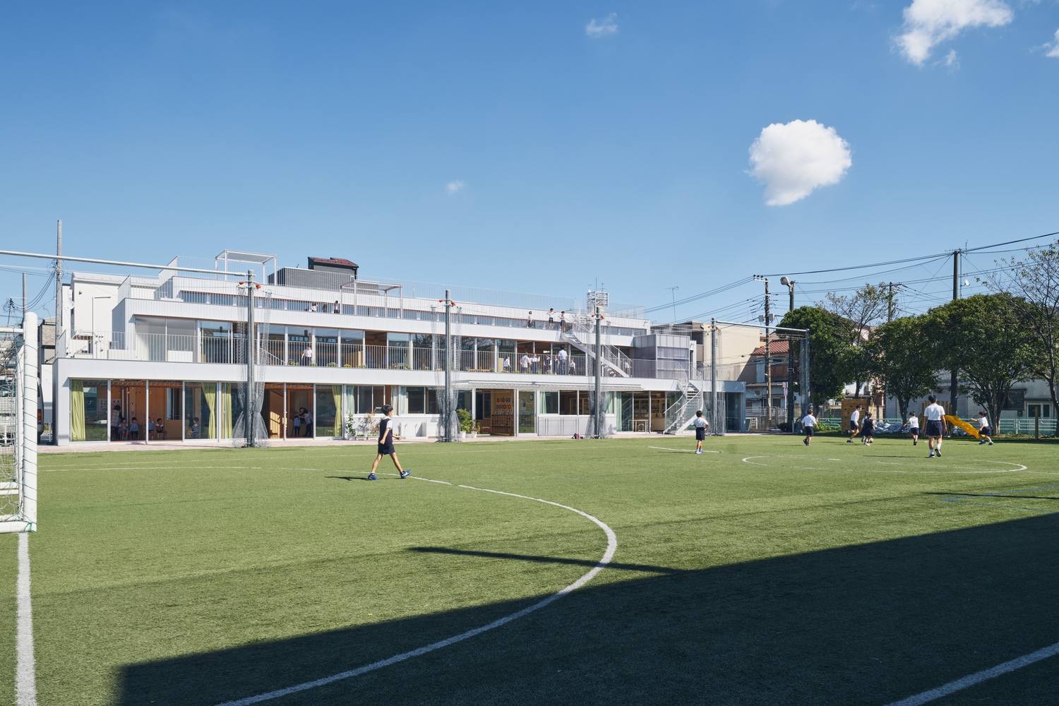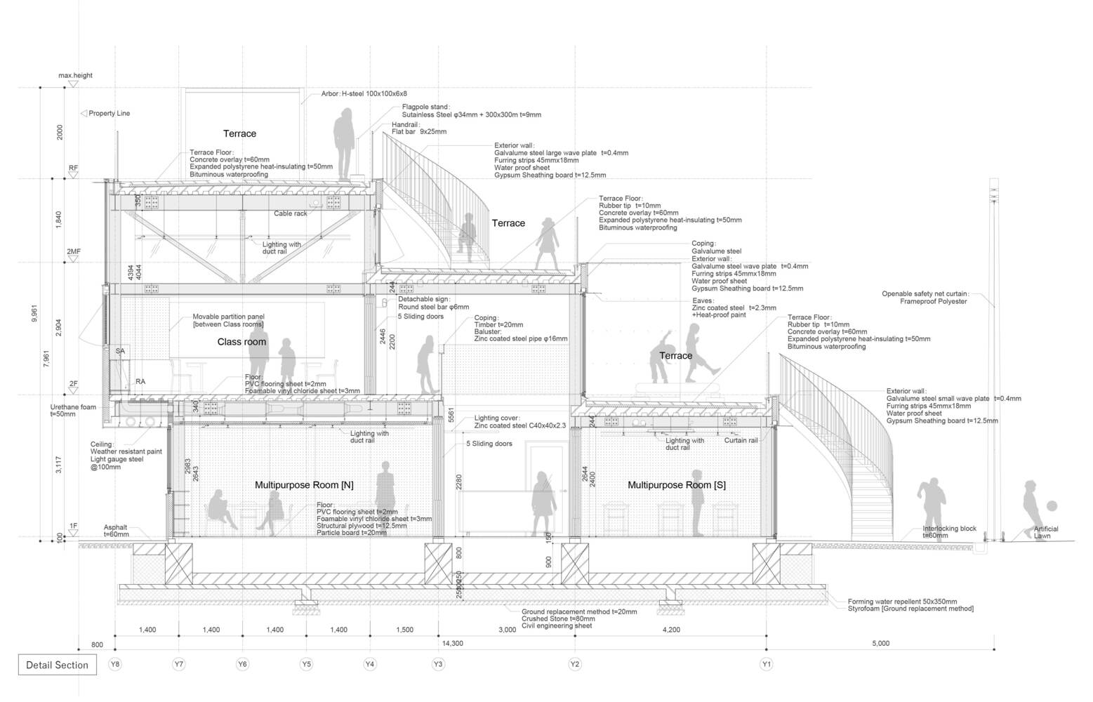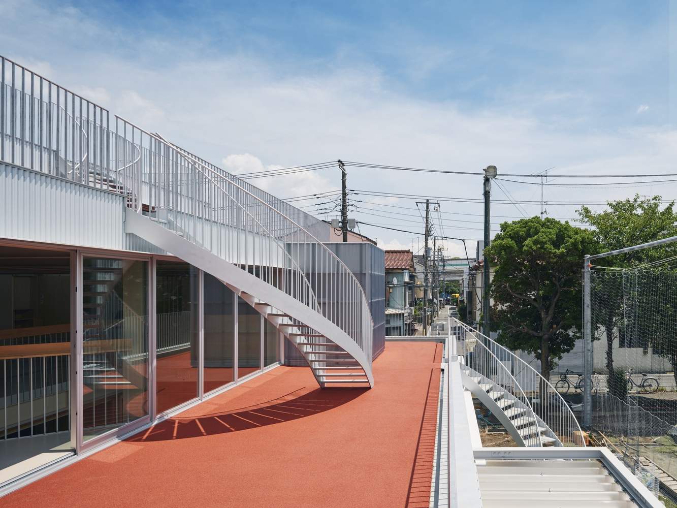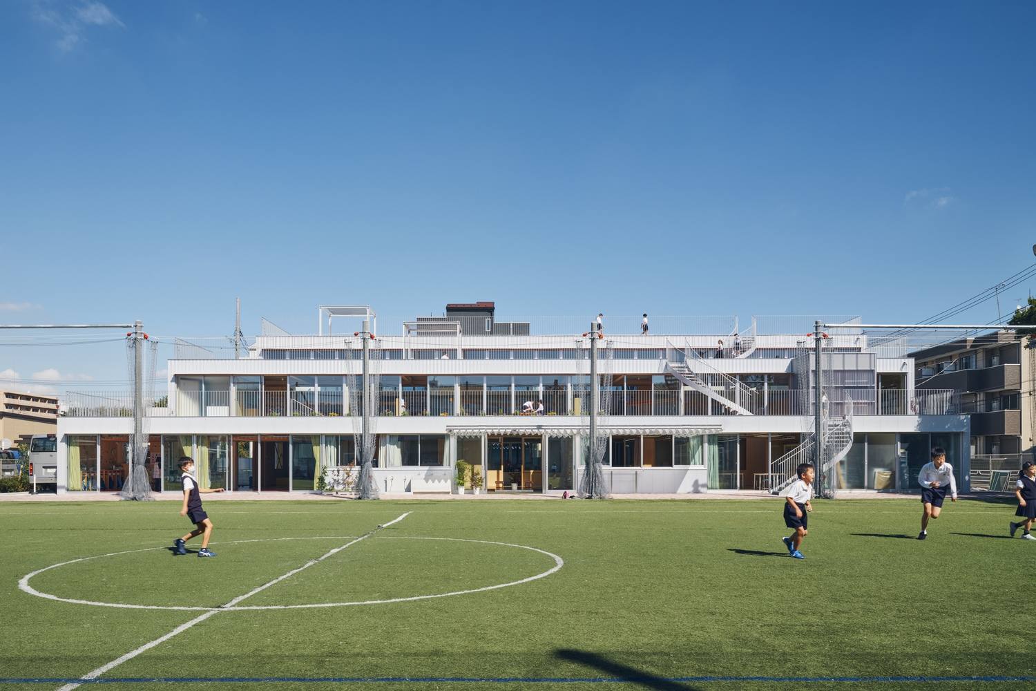 For this new North Korean school, opening up to the surrounding environment is a core theme that goes beyond its history of discrimination in Japan.. As the activities on the terrace can be seen from the street, this three tiered terrace has become a stage for the town. The scene of children running and playing on the terrace has become a daily sight in the local community. The activities on the terrace blend seamlessly with the surrounding environment, and the design team also intends to make this North Korean school a part of the local scenery.