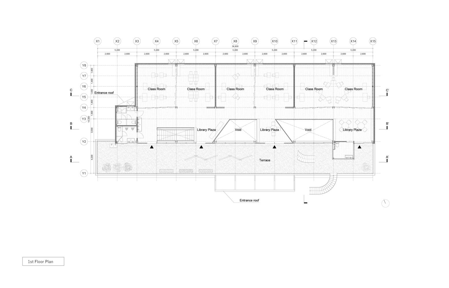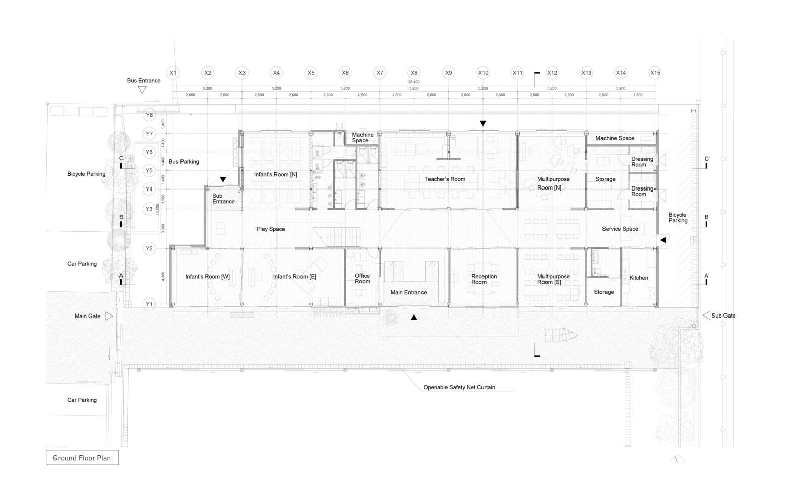 学校将部分土地出售,以筹集新建校舍的资金。因此,起初人们非常担忧出售部分土地会压缩孩子们的活动空间。针对这一问题,设计团队调整了两层建筑的体量,并提议打造一个与校园相连的开放式三层阶梯露台,供孩子们玩耍。