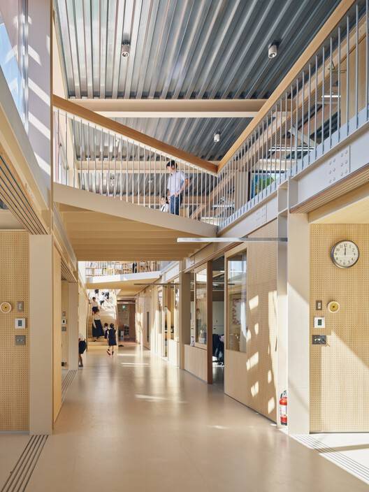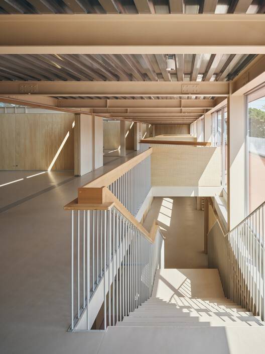 校园与社区的桥梁:该项目的核心亮点在于其对社区开放性的强调。设计师巧妙地将出售土地可能导致的活动空间压缩问题转化为机遇,通过设计一个与校园相连的三层阶梯式露台,创造了孩子们嬉戏玩耍的公共空间。这种设计不仅弥补了活动空间的损失,更重要的是,它将学校与社区紧密联系起来。阶梯露台成为连接校园与街道的桥梁,让学校的日常活动融入当地社区的日常生活,从而消除了潜在的隔阂,实现了建筑与环境的和谐共生,这是该项目在社会层面上的重要贡献。