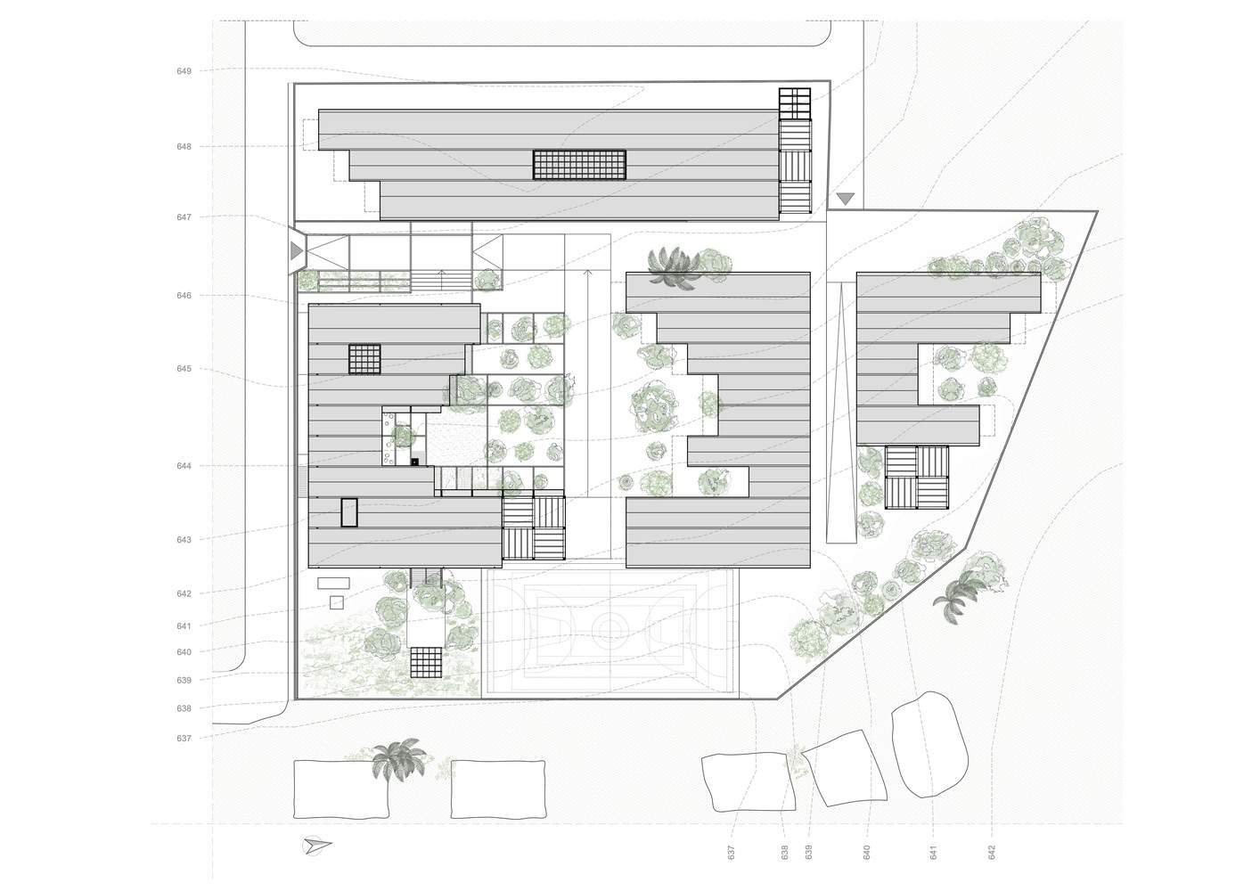 In the campus, children's daily activities and spatial characteristics form a deep resonance: during morning gatherings, they sit around with teachers to discuss together; Fragmented information stimulates cognitive exploration; Exercise physical fitness through cantilever monkey racks and climbing ladders; Meditation in a space that inspires spirituality; Play freely in the central courtyard; Exploring nature in groups; Hands on experiments in the materials laboratory; Play music pieces with local instruments. Campus design follows a minimalist construction system and primitive geometric logic - these characteristics stem from the expression of the authenticity of materials. In addition, the original terrain elevation difference of the site provides the possibility for the expansion of the second floor space, and its initial function will serve as a residence for community members of the "African Flow Charm" project.