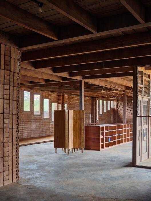 材料与建造的创新:项目最令人赞叹之处在于其对本土材料的创新性运用和对当地建造技术的尊重。建筑师巧妙地利用当地特有的阿佐贝木、夯土砖等材料,并与当地工匠合作,共同完成了建造。这种策略不仅降低了建筑的碳排放,也促进了当地社区的发展,为当地工匠提供了学习新技术的机会。建筑师并没有简单地照搬西方设计理念,而是深入研究了当地的文化和建造传统,并将其融入到现代建筑设计中。这种双向学习的模式,使得项目在技术层面和文化层面都具有了重要的意义。项目不仅是一个建筑实体,更是一场关于建造范式的革新,展示了可持续发展的可能性。