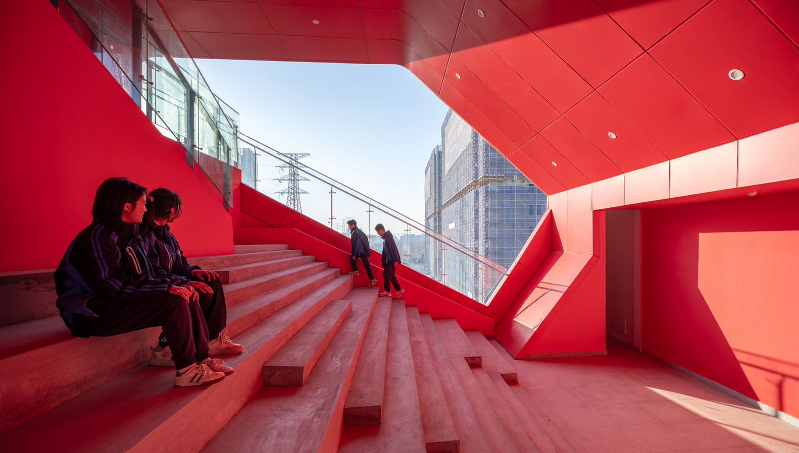 设计创新性地引入“街道”概念,以蜿蜒曲折的主街与穿越高差的支路,串联起各个校园功能区域,构建多元复合的校园空间体系,激发丰富的校园生活体验。