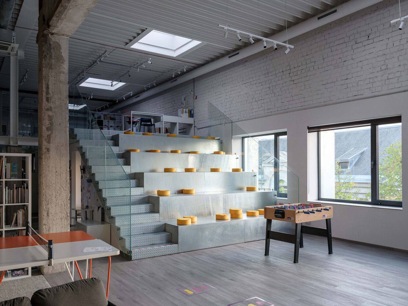 同样重要的是,考纳斯作为曾经的工业城市,具有其独特的特征,保存完好的建筑或其碎片有助于保护这一特征。 因此,考虑到历史背景和建筑物的潜力,决定不拆除它,而是通过更新外观和调整内部布局以适应新的用途来振兴它,同时保留建筑物的体积和独特的工业结构。
