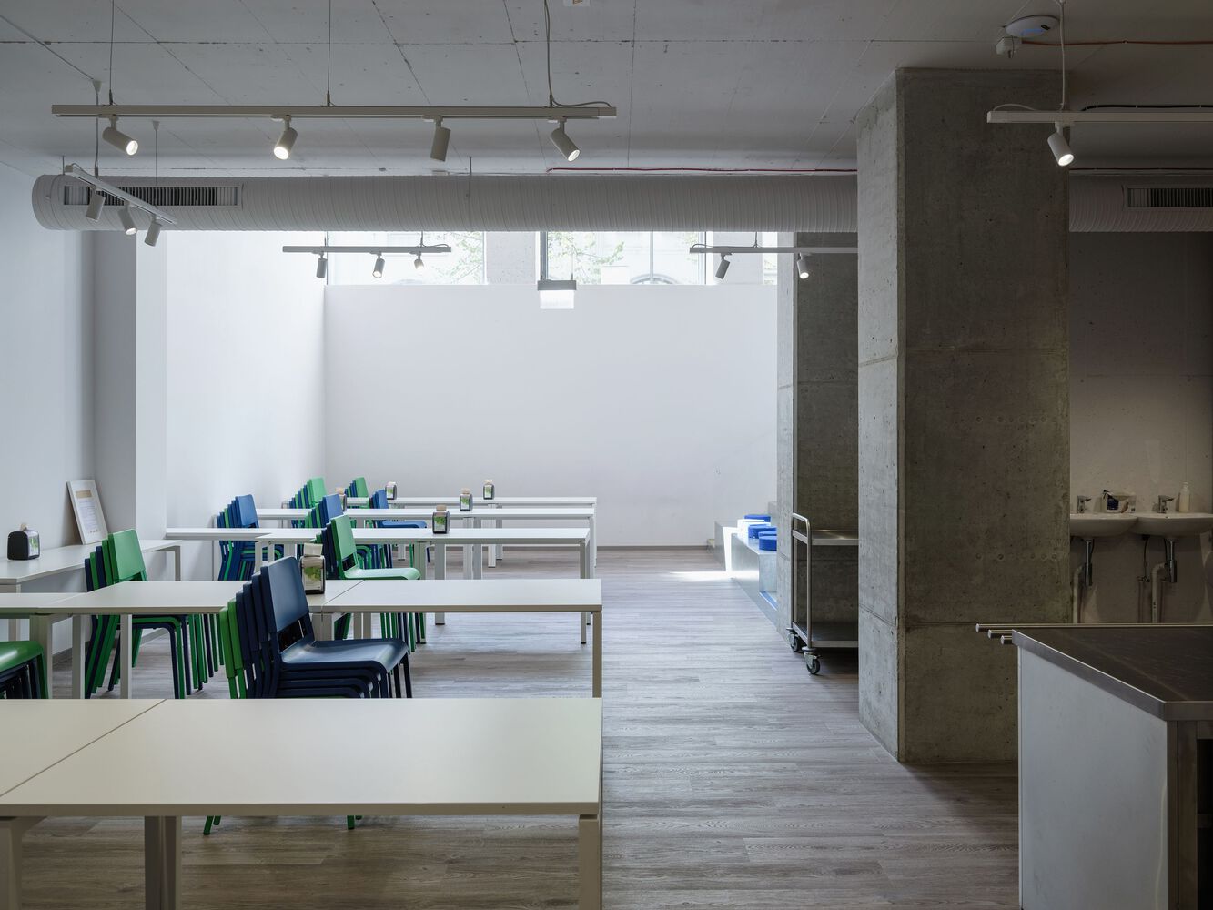 建筑复兴的目标是使其适应现代和非传统学校的需要,同时又不失建筑的特点:为不同的活动创造功能性强、效率高的空间,易于改造,并在学校内营造一个充满活力、民主和自由的气氛。这是一个清晰的空间结构,有安静的、以集中为导向的房间,但主要的空间鼓励灵感、创造力和社区活动在聚集区。 在这栋建筑中,几乎每个空间都用于多种功能,而且从不空置:圆形剧场可用于学习、玩耍、表演和就餐,大厅可用于阅读、创意活动、与家长会面,甚至跳舞。