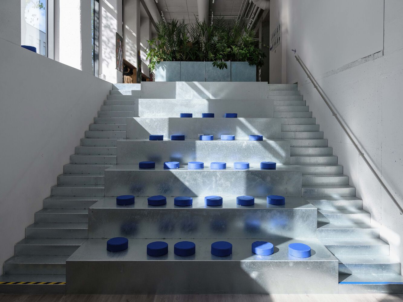 这所学校不仅仅是一个上课的地方,它还努力成为一个充满活力、热闹的空间,让学生、老师、家长甚至当地居民都能在这里相遇。 因此,一楼向公众开放——公共空间、体育馆和露天剧场不仅用于教学,还用于活动、市场、研讨会和表演。 所有这些决定都反映出一种共同的愿望,即创造一座与城市融为一体的建筑,不孤立于城市,而是融入环境,使其与城市及其人民和谐共处。 翻修后的建筑立面采用光滑的立体镀锌钢板,赋予建筑工业特色。 每块板都是独一无二的,图案各异,对环境和季节的反应各不相同,通过轻柔的笔触和阴影创造出生动活泼的视觉效果。 为了强调继承的工业特征,镀锌板装饰元素也反映在室内元素和室内圆形剧场中 —— 这些细节创造了一种不同的美学体验,并延伸了学校的理念,即孩子们在真实材料的包围下享受成长。