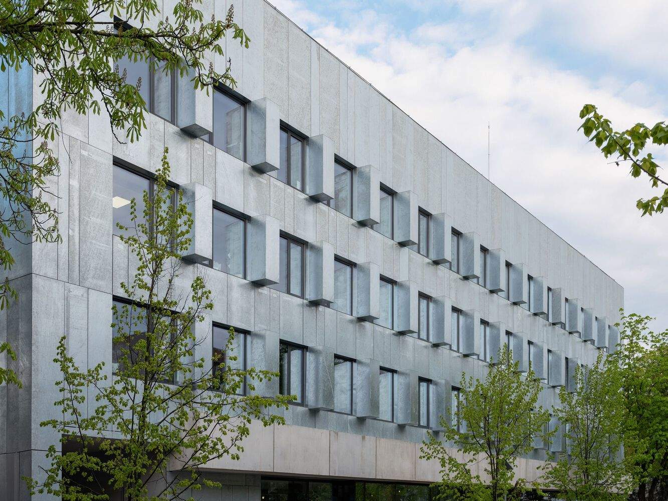 材料与细节的精致呈现:建筑外立面采用的镀锌钢板是该项目的另一大亮点。 这种材料的选择不仅呼应了建筑的历史工业背景,也赋予了建筑独特的视觉效果。 镀锌钢板的纹理和光影变化,在不同季节和光照条件下呈现出不同的美学感受,为建筑增添了生机与活力。 室内细节的设计同样出色,镀锌板元素在室内元素和圆形剧场的运用,延续了建筑的整体风格,并营造出独特的空间氛围。 这种对材料的精准把握和细节的精致呈现,体现了设计师对建筑品质的极致追求,也为学生营造了一个充满启发性和美学价值的学习环境。 建筑师用富有质感的材料语言,赋予了学校建筑独特的个性和魅力。