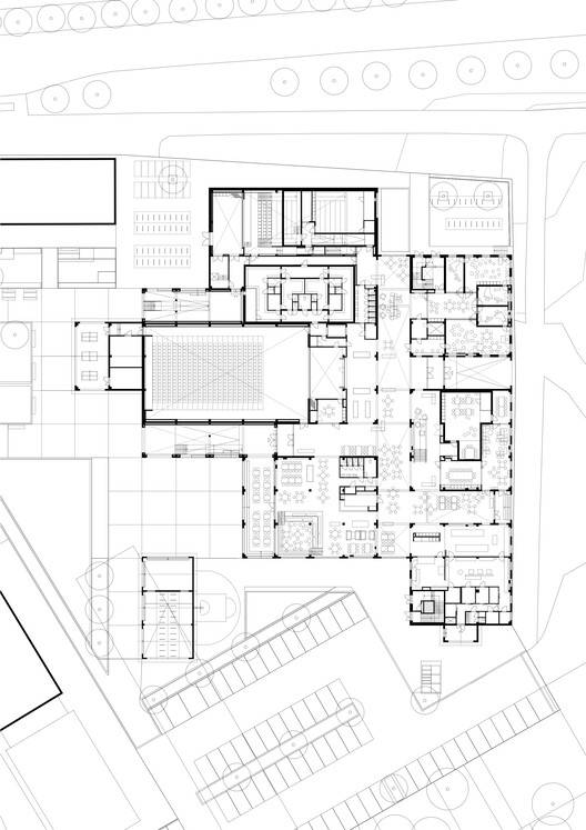 多功能共享空间与资源优化: 莫尼奥项目在功能布局上体现了共享与可持续的设计理念,将高中、音乐学校、艺术学校、社区学院以及市政文化服务部门的功能整合于一体,实现了资源的有效整合和利用。这种设计策略不仅提高了建筑的使用效率,也为不同群体提供了更多交流与合作的机会。共享空间的设计还促进了公共活动的开展,例如咖啡馆、画廊以及各类开放活动,这使得建筑成为一个充满活力、面向公众的文化中心。通过整合不同功能,莫尼奥在有限的资源下,实现了空间效益的最大化,为公共建筑设计提供了具有借鉴意义的范例。