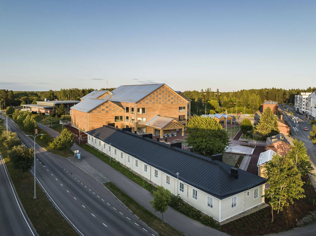 The newly built Monio High School and Cultural Center is located in the former military base area next to the center of Hyryl ä town. Monio's architectural design interprets the characteristics of its surrounding historical environment and creates a landmark building that connects the developing area with the town center. Mourinho can be regarded as the most important public building in Tuusula.