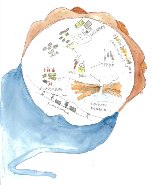 卡拉萨高级中学位于 D 区,即飓风频发区,这里属于炎热半干旱气候,在常规飓风期间会遭遇强降雨和大风。学校坐落于一处冲积平原上,背靠古老山丘,该冲积平原的水流汇入尼克尔湾,并与亚布拉拉文化遗产步道相连,步道沿线包含具有重要文化意义的原住民遗址。