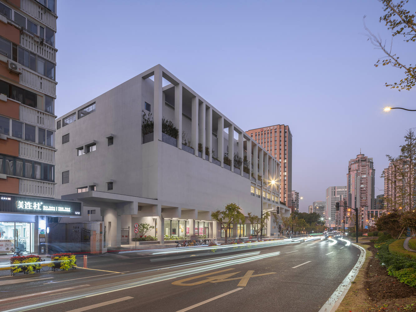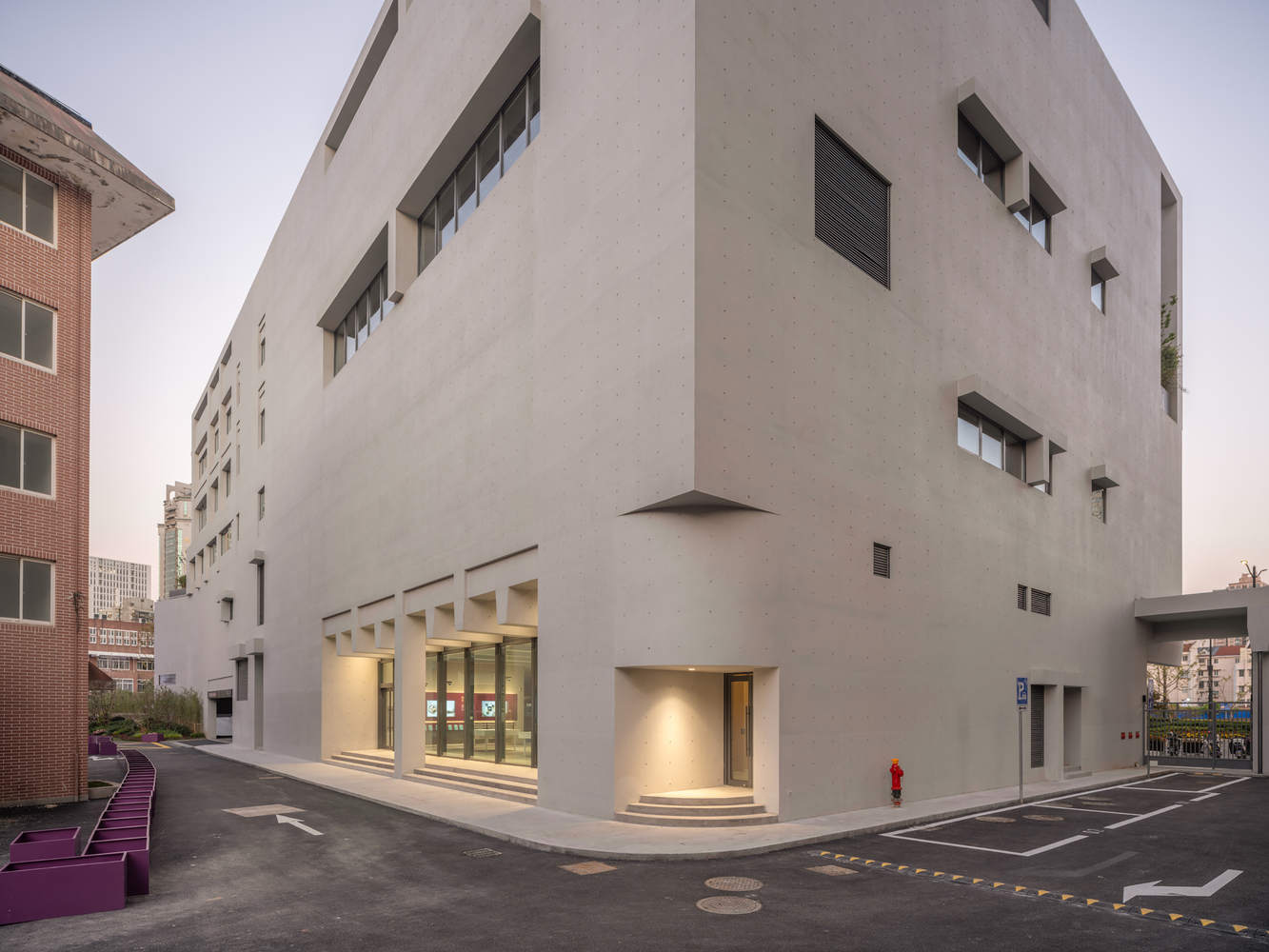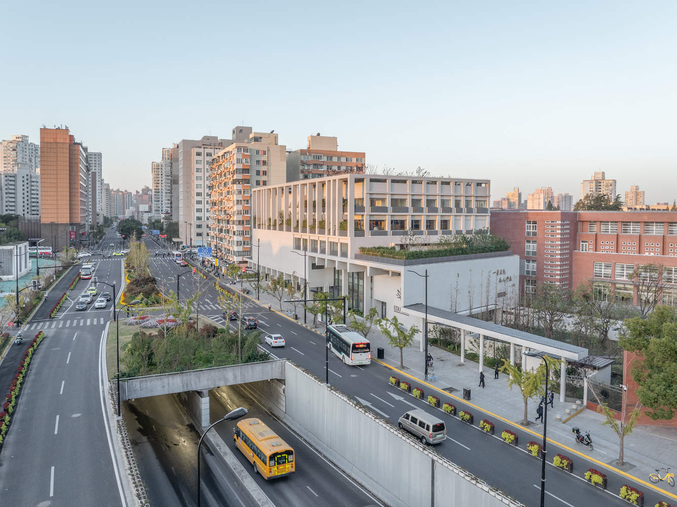 The Yuyi Education and Teaching Thought Research Center project is located near the intersection of Siping Road and Dalian Road in Yangpu District, Shanghai, at the southeast corner of Yangpu Senior High School. The east side is Siping Road, and the south side is a high-rise residential community. Over the past 20 years, due to the construction of subway lines 10, 8, and the underpass of Siping Road, the urban environment along Siping Road has been greatly affected, leaving long-lasting wounds that are difficult to heal.