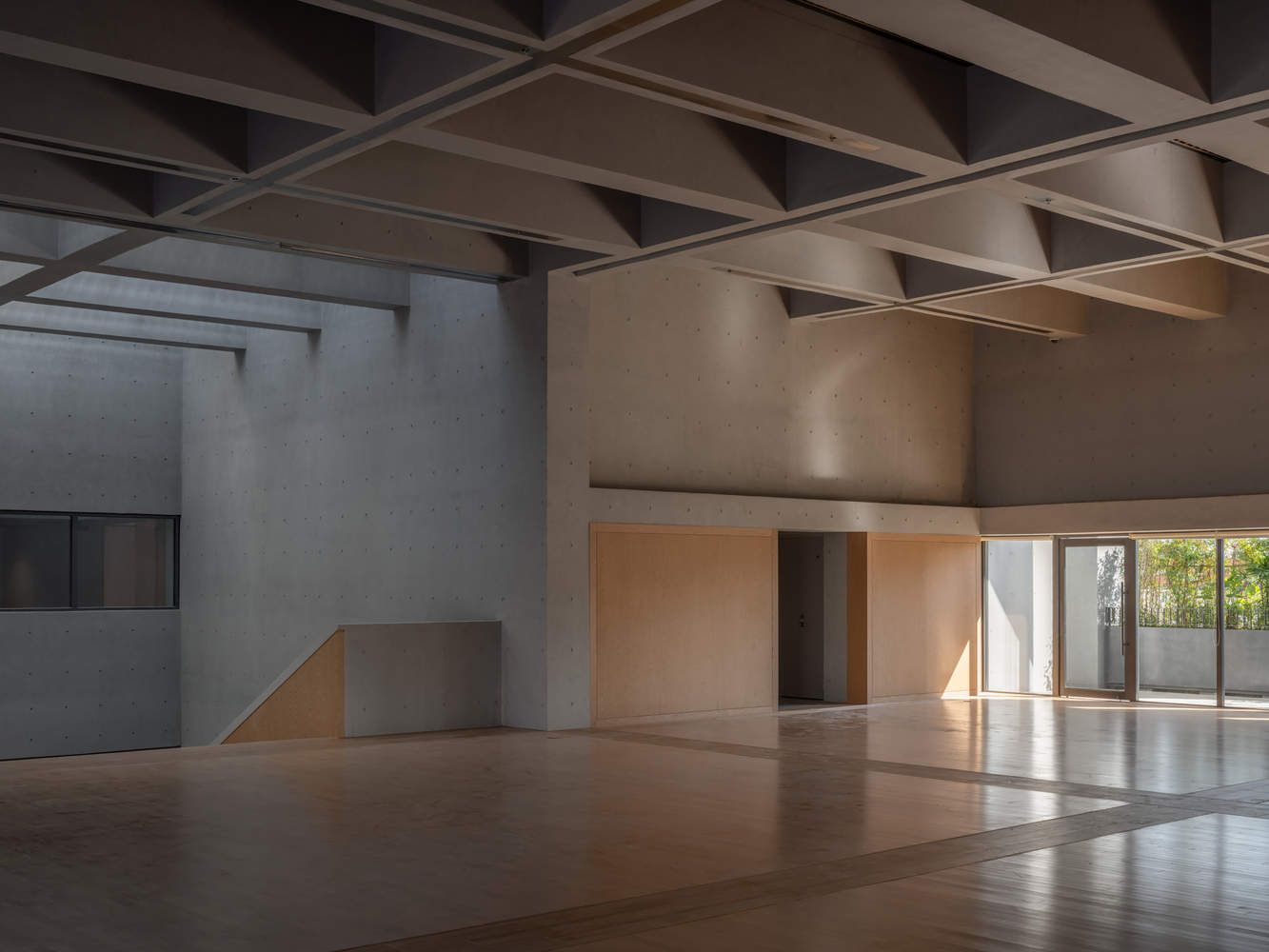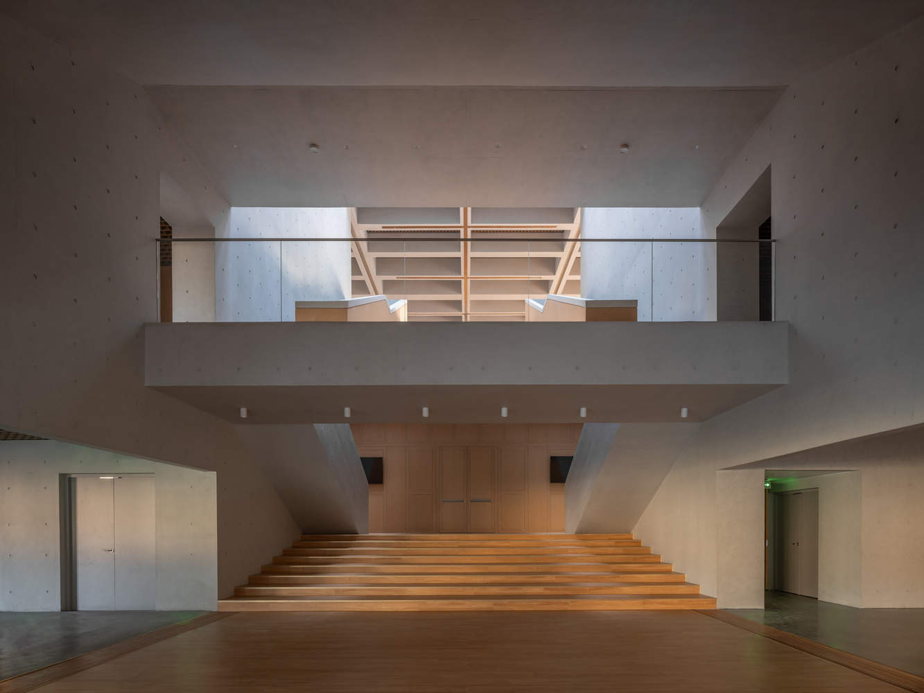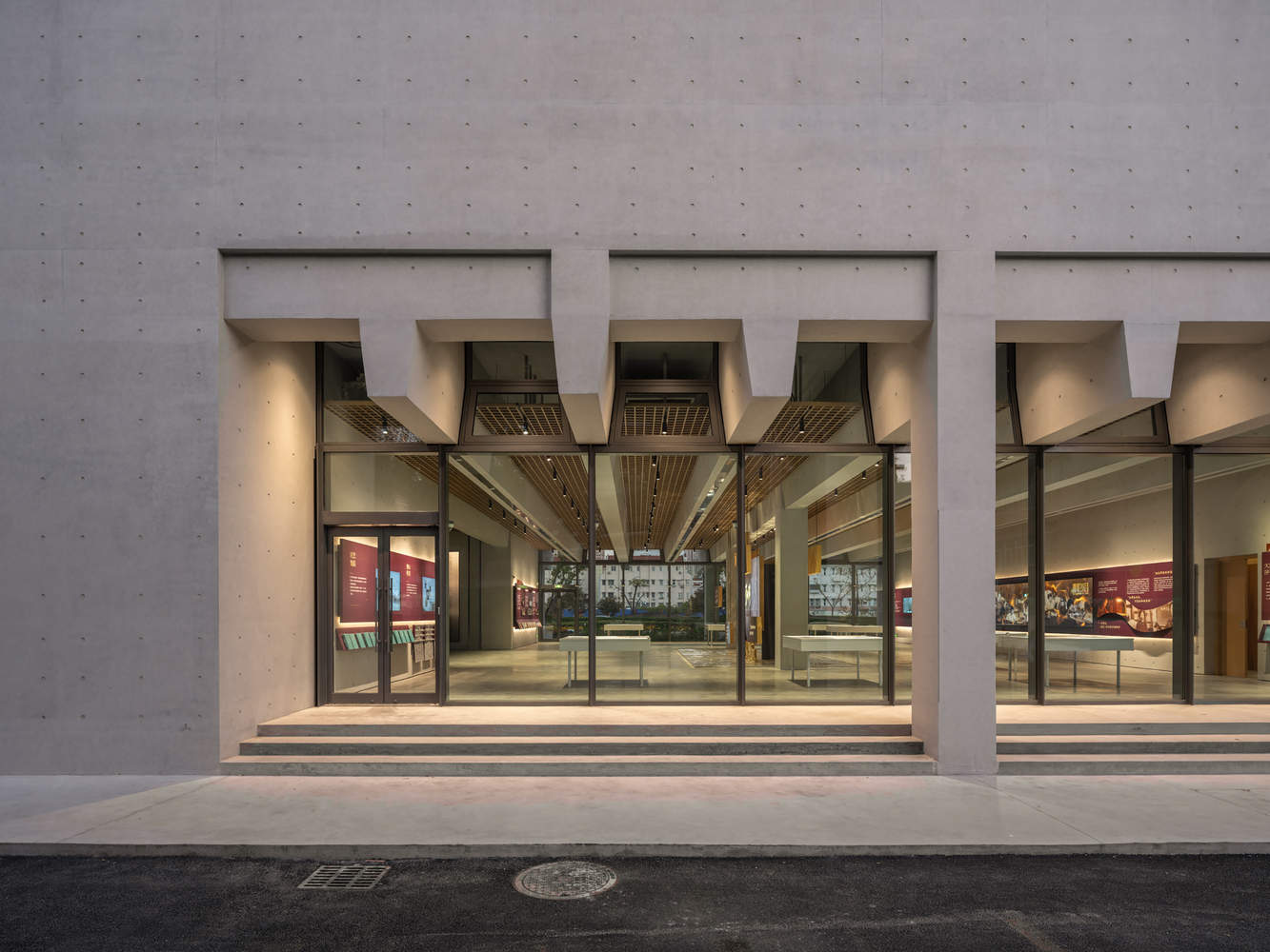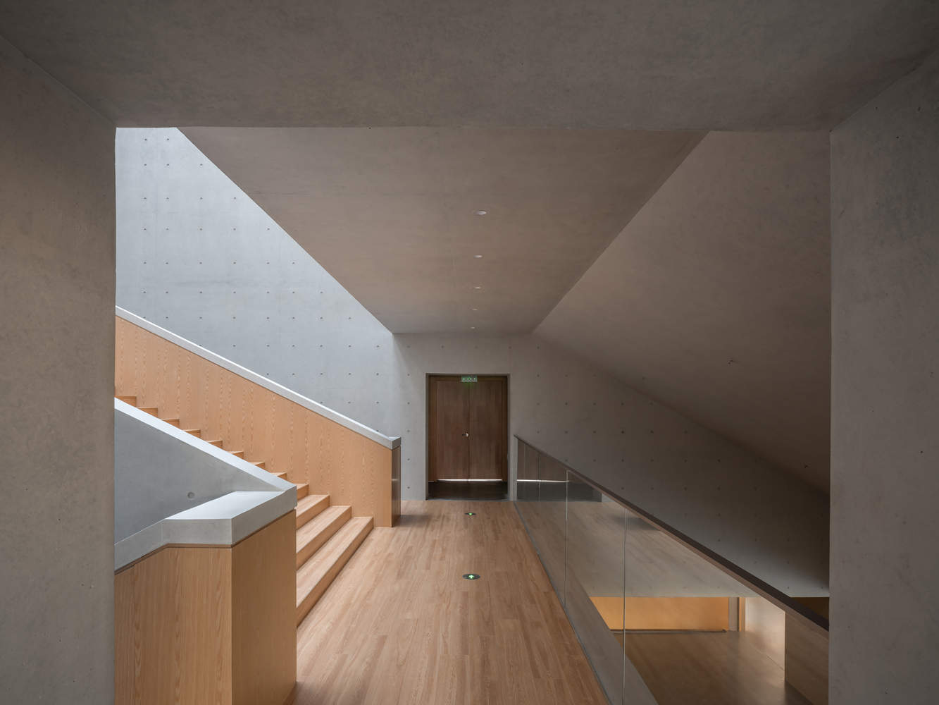 Therefore, the water fir forest in the site is not only symbolic, but also an important clue for organizing the internal space of the building and forming the architectural form. The building of the research center is made of plain concrete material, which strengthens the composition relationship between the supporting columns and beams. It continues the image of the cedar forest on the exterior and expands to the urban interface to the maximum extent on the main facade facing Siping Road, forming a "thriving forest" to metaphorically represent Ms. Yi's plain original intention of teaching and educating people, highlighting the simple and timeless educational philosophy.